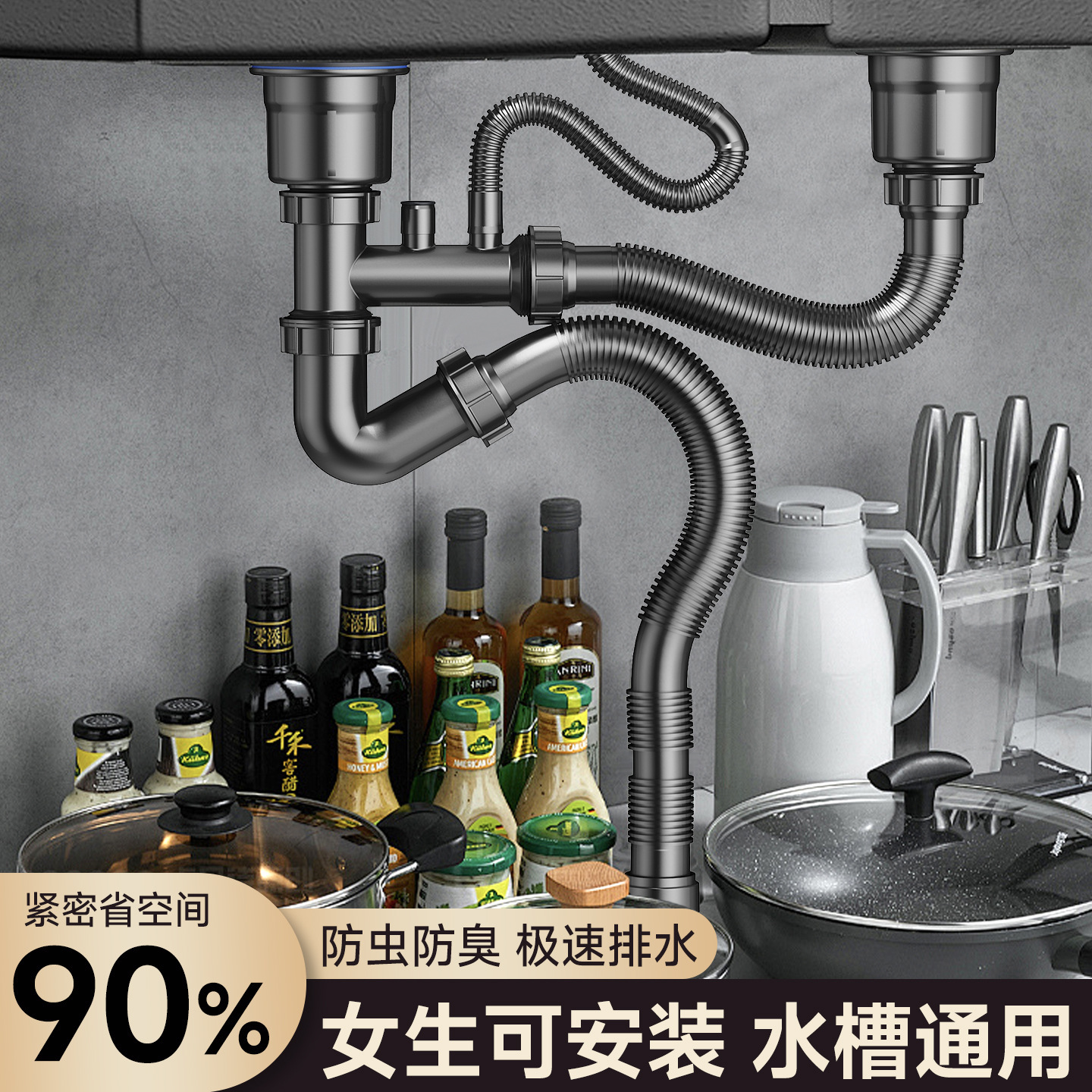 代件洗濯盆下水管部品皿洗い池水槽管ステンレス下水器防臭神器セット