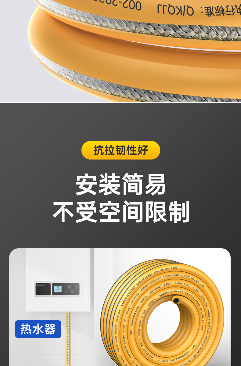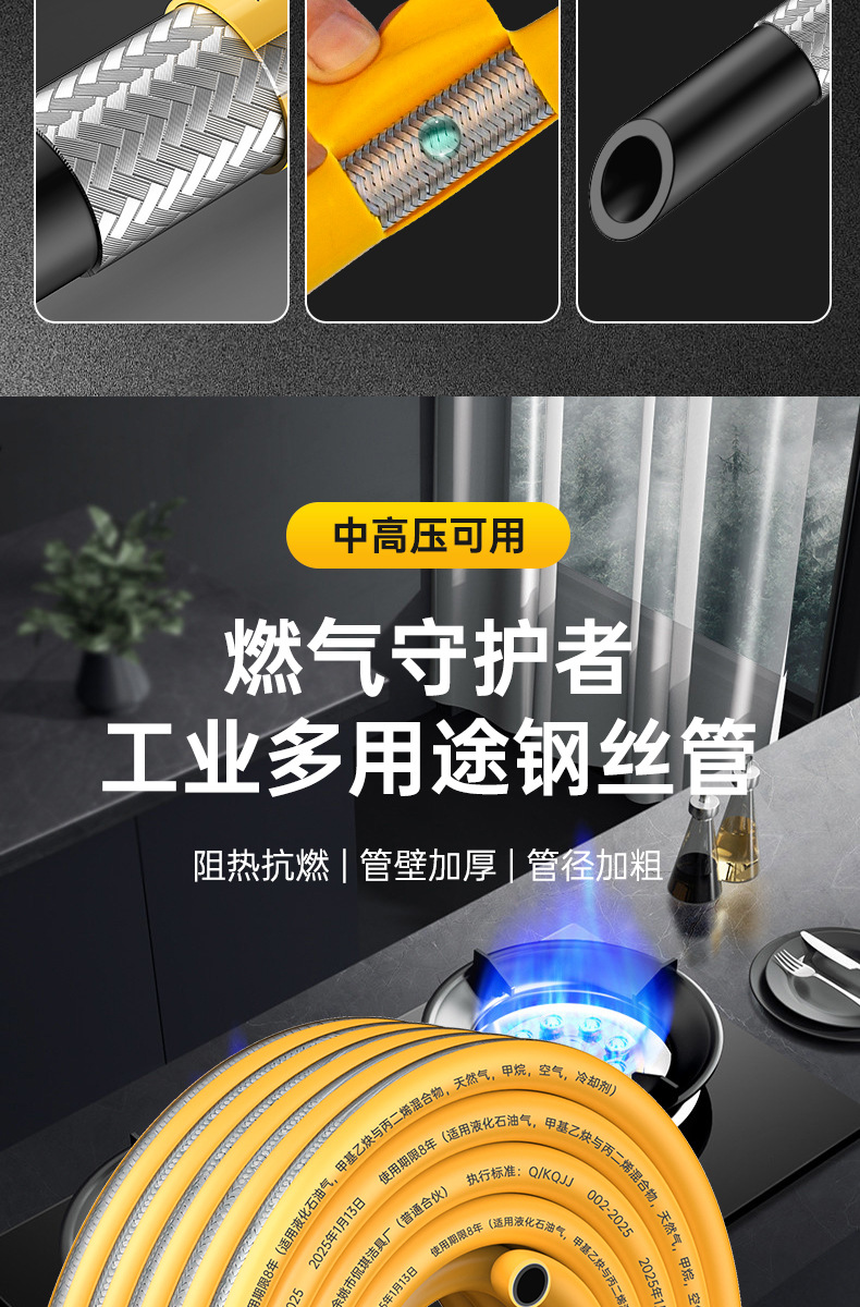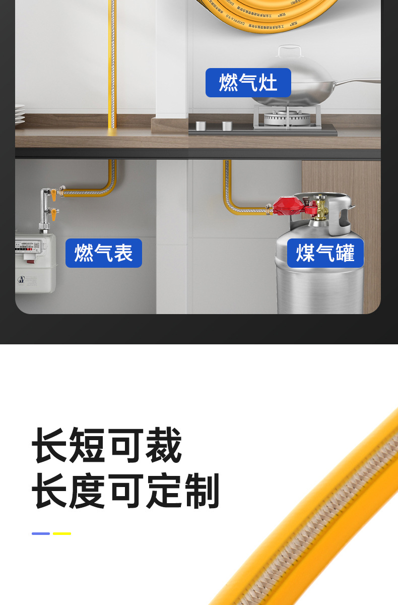 3C认证新国标铠装燃气管煤气管液化气天然气管家用低压厨房专用