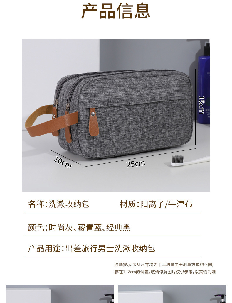 热销男士洗漱包大容量旅行化妆品收纳袋加厚阳离子防潮手提化妆包