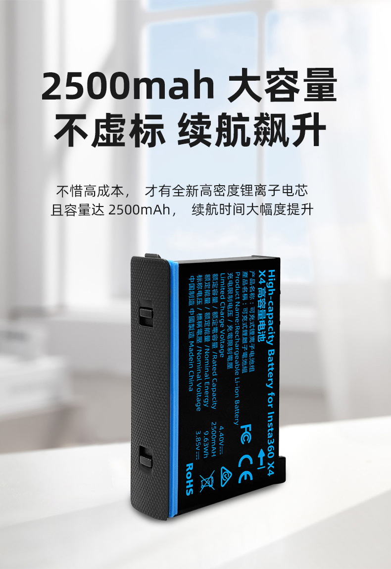 Ins 360x4バッテリ (2500mAH) スポーツカメラ360x4高持続充電に適しています