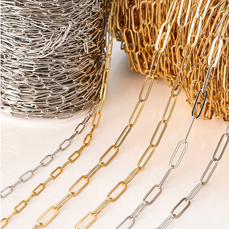 クロスボーダーステンレス鋼オーバルクロスチェーンヒップホップチェーンペーパークリップ O 字型チェーンネックレスチェーン DIY ジュエリーアクセサリー