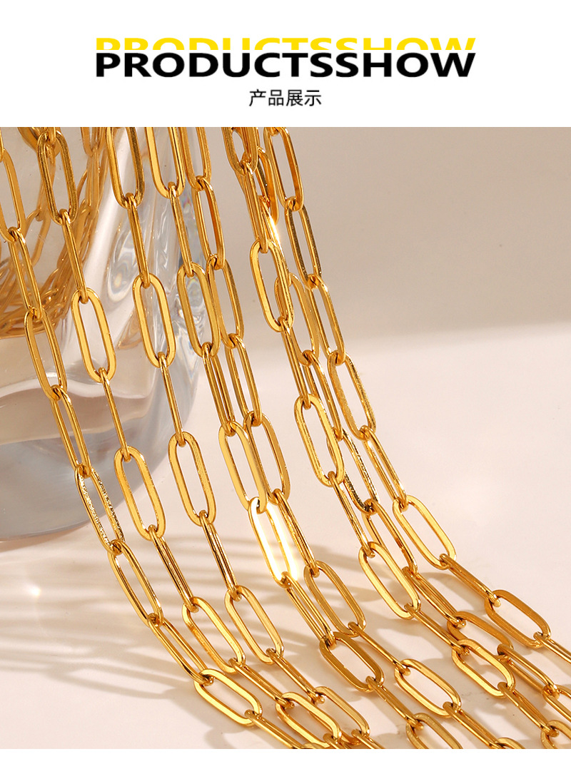 真 � � ゴールドメッキステンレス押しつぶす长いハンマークロスチェーン楕円形ケーブルチェーンネックレス女性カバンアクセサリーチェーン