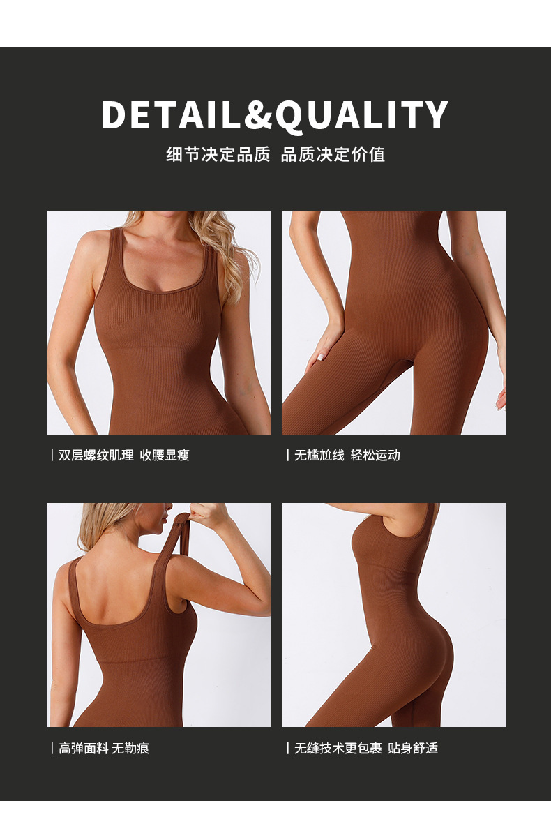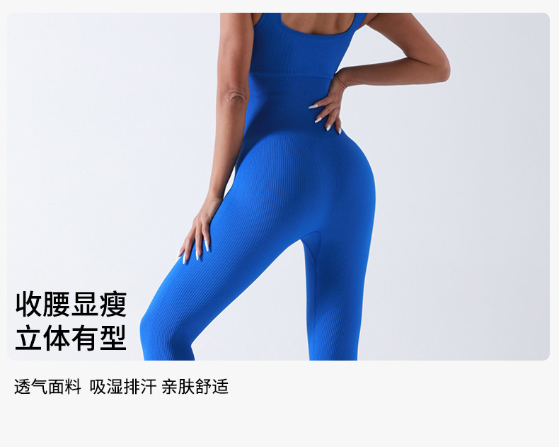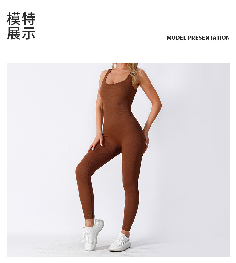 双层针织带胸垫螺纹长裤连体服无缝运动服健身瑜伽服连体衣长裤