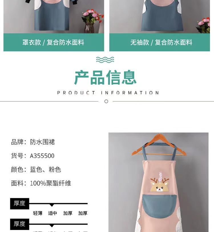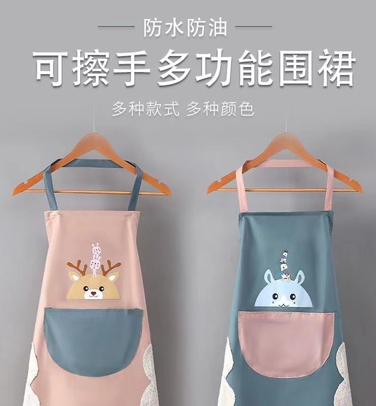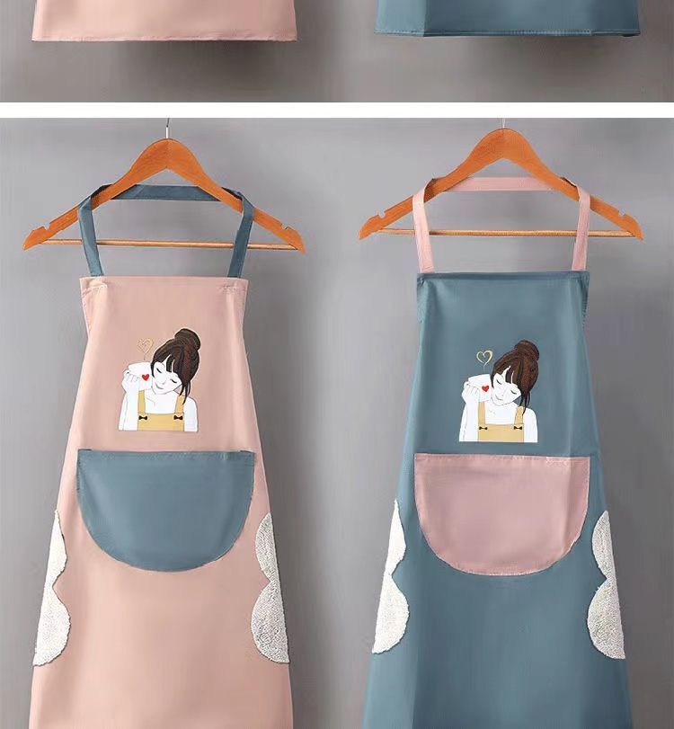 手を拭くことができるエプロン女性ファッションキッチン家庭用防水防油かわいい日系料理防油カバードライ作業服