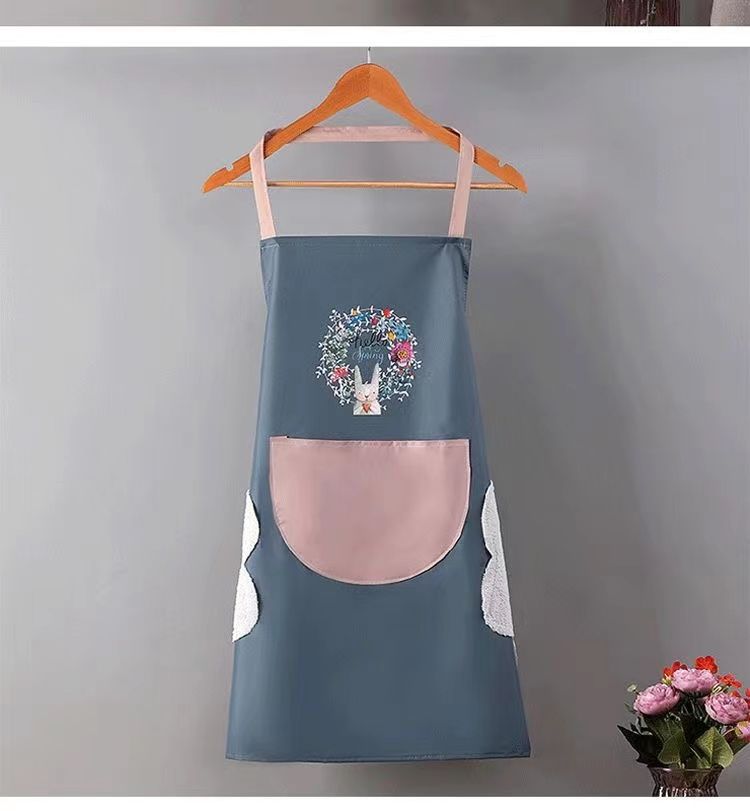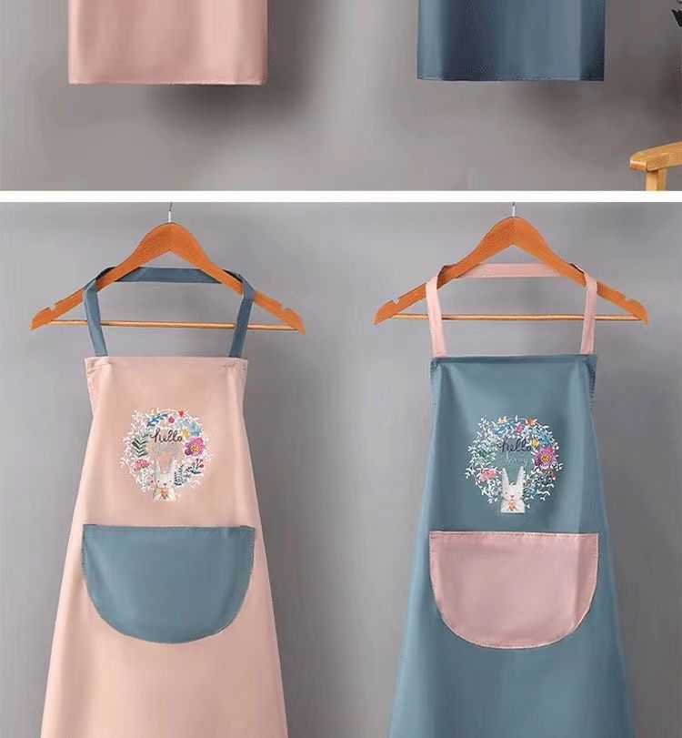 メーカーはプリントロゴエプロンガーランドウサギ手拭き女性キッチン防水耐油エプロンファッション韓国版カップルをサポートしています