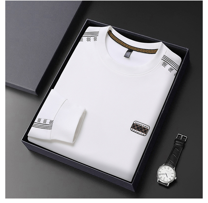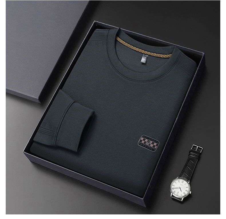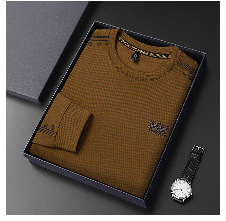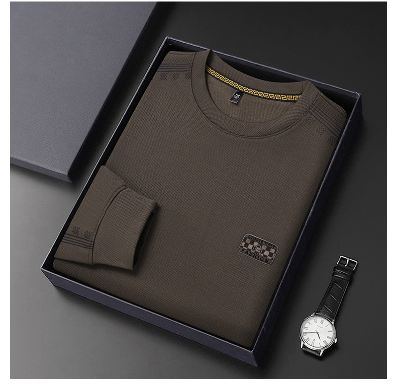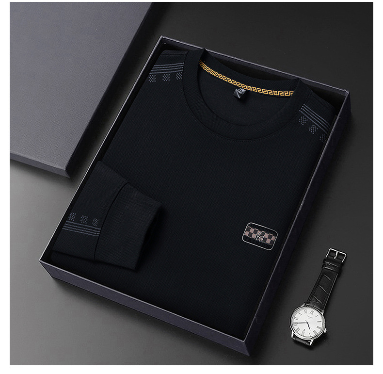 2024秋の長袖tシャツ男性のお父さんは、新しいビジネスカジュアル中年男性の襟を2枚にしたふりをしている