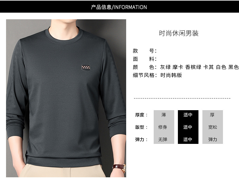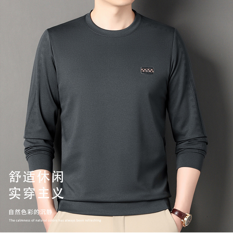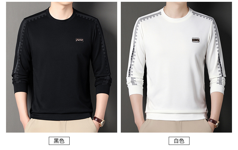 2024春の新しい丸首の男性のファッションの現物の中で若い熟のカジュアルな長袖の頭の男性のtシャツ