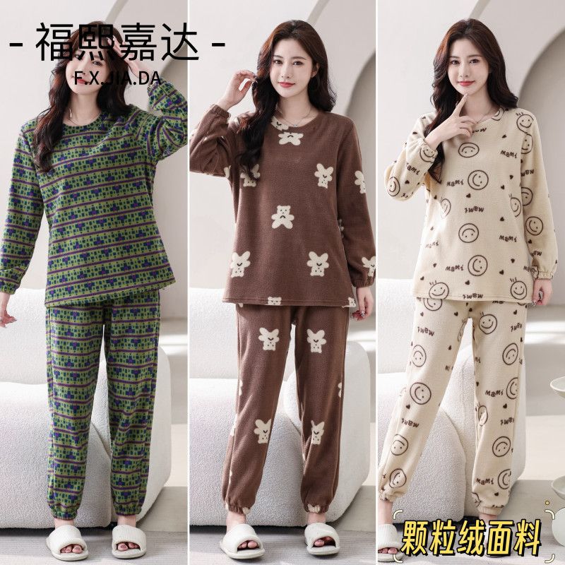 福熙嘉达2025秋冬新款圆领宽松大码套头长袖简约休闲外出保暖睡衣