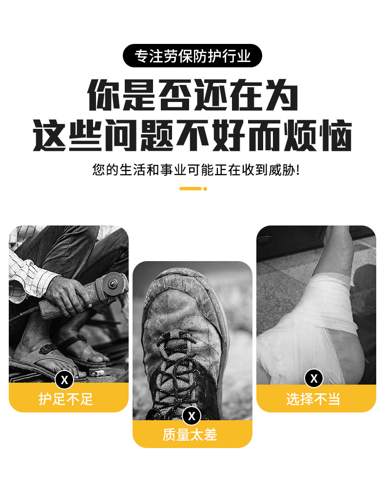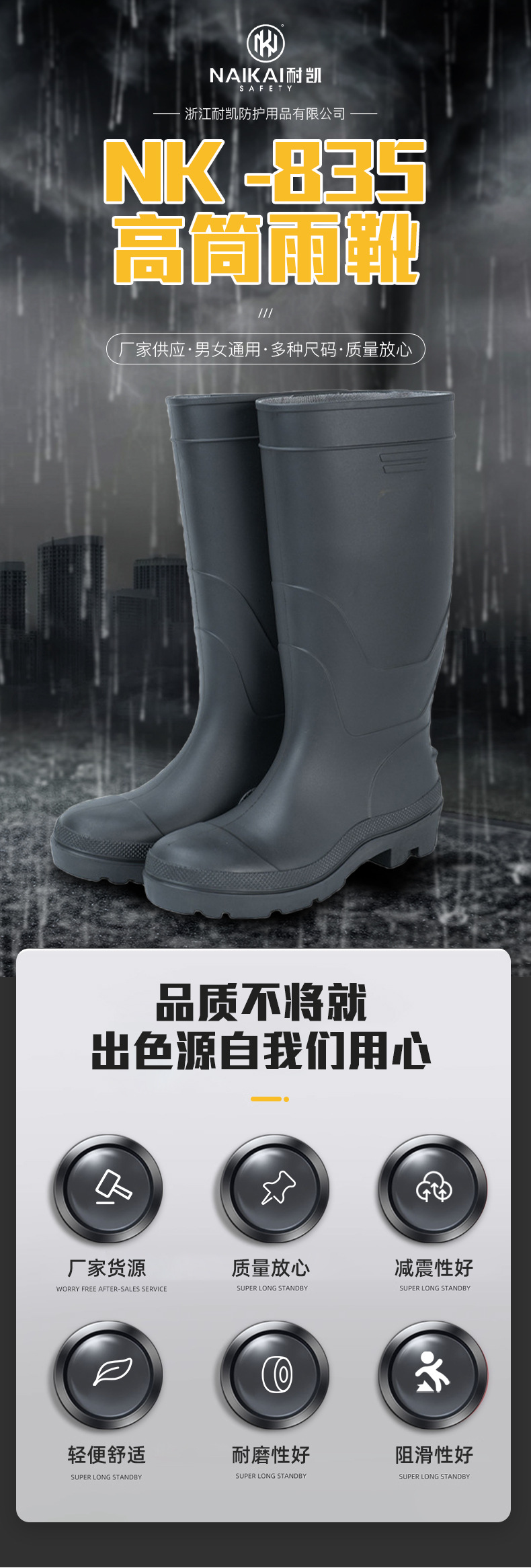 黑色高筒雨鞋PCV钢头钢底加厚鞋底防刺穿工矿靴男女同款雨靴