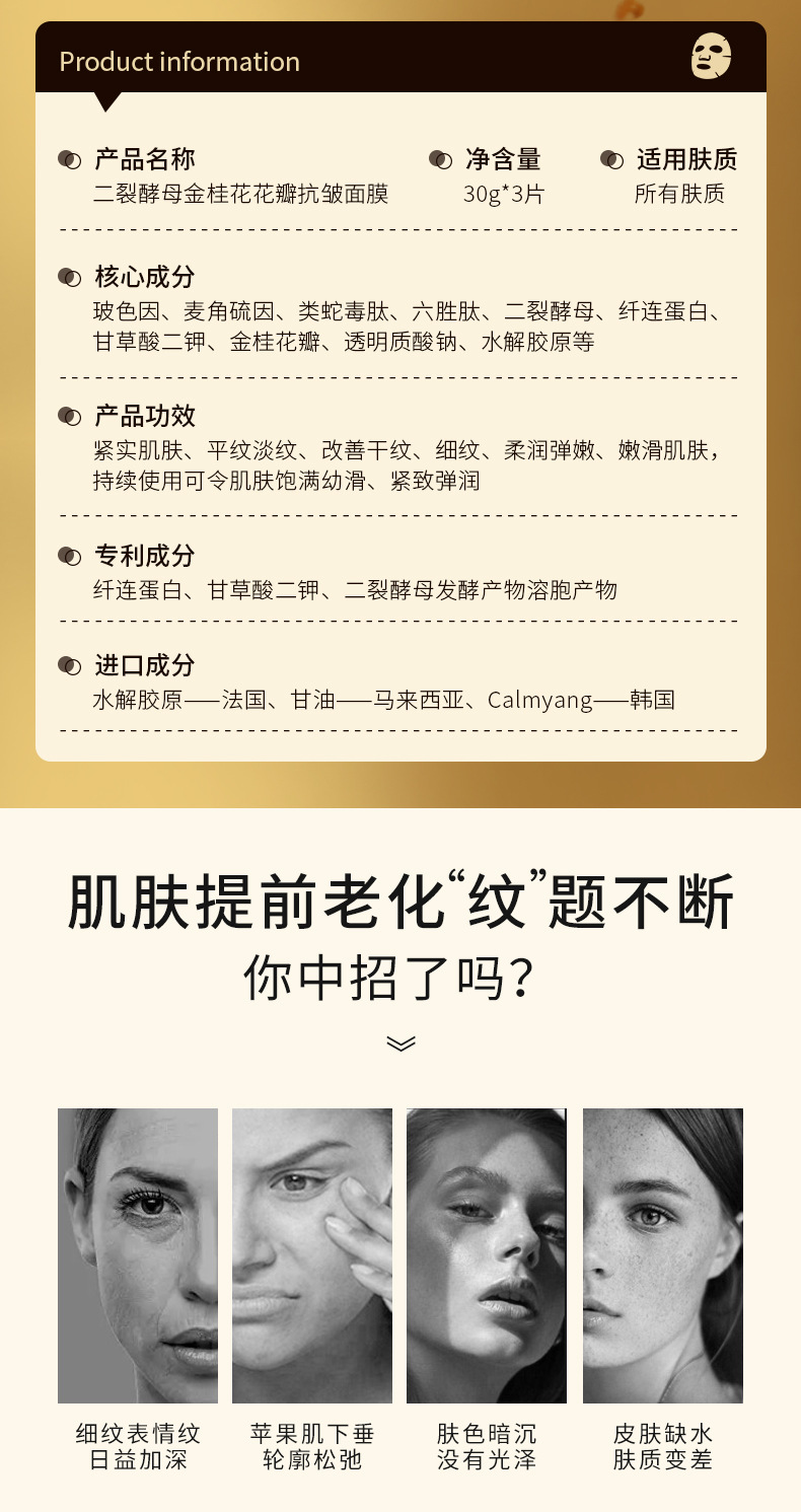 二裂酵母花瓣面膜提拉紧致胶原蛋白面膜补水保湿改善干纹细纹贴片