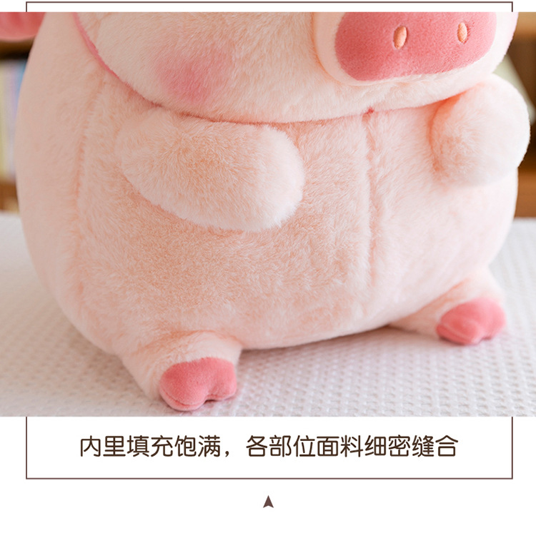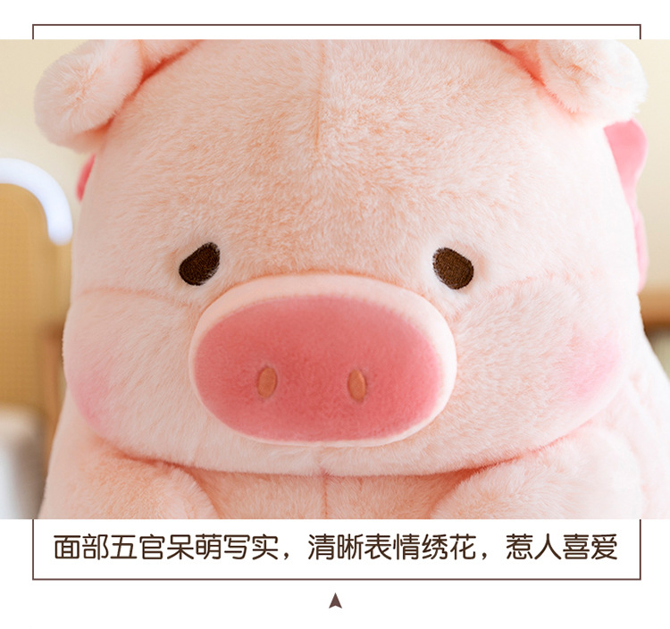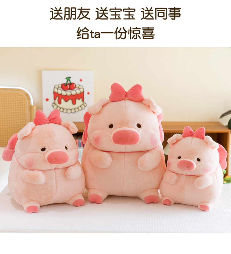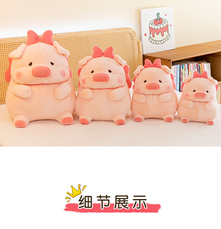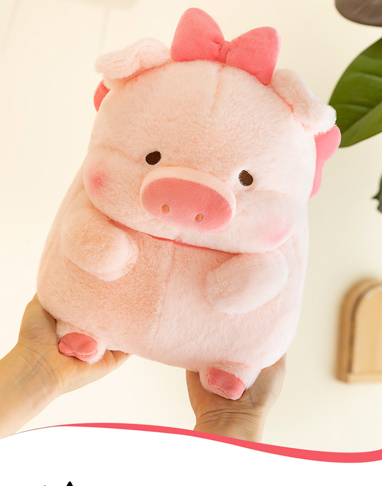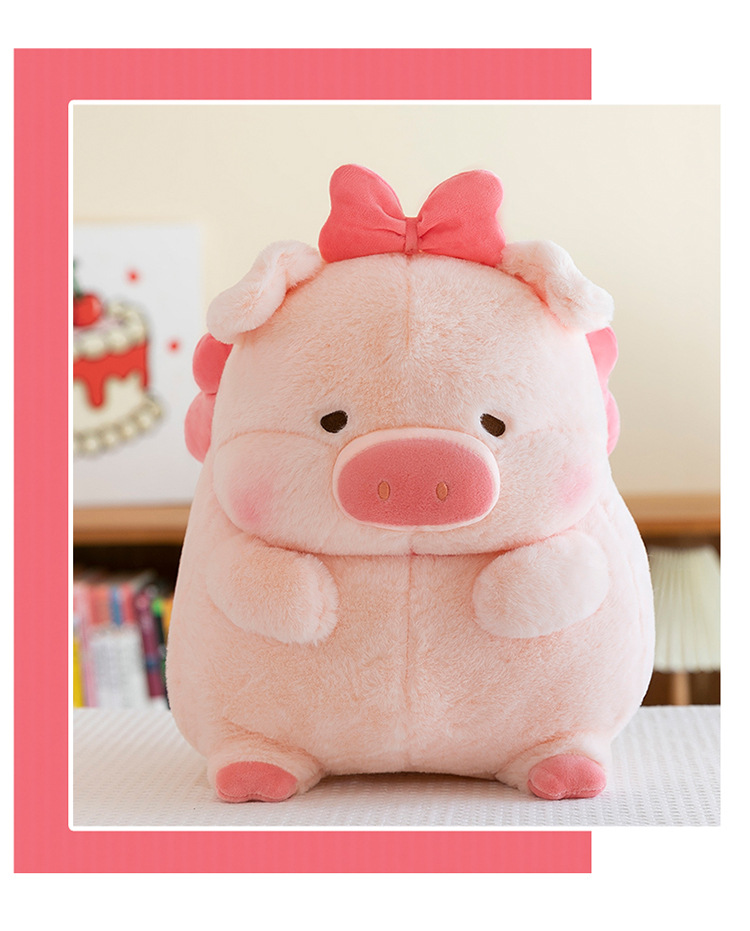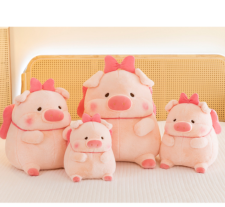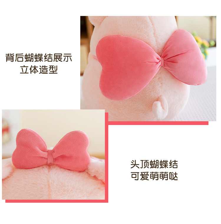 かわいい蝶結びのピンクのブタのぬいぐるみの子供は寝ます。