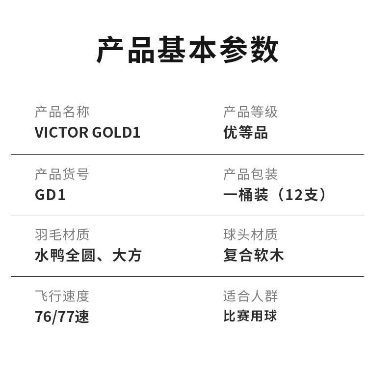 ビクタービクターバドミントントレーニング試合12羽入アヒル毛玉黄金1号GD1安定耐打
