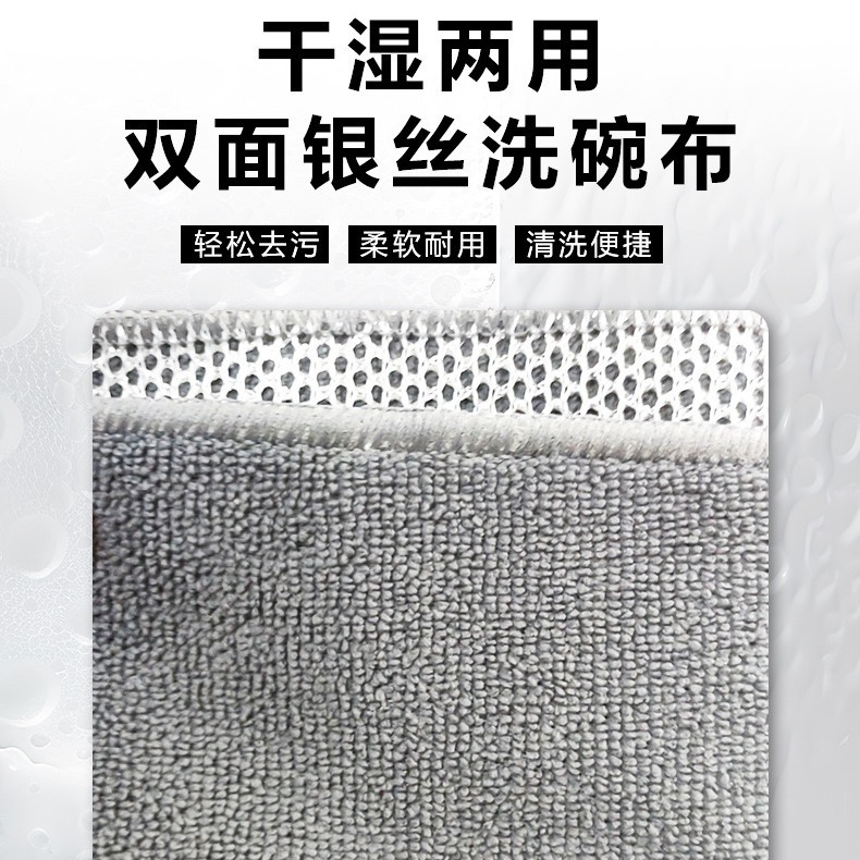 銀繊維マイクロファイバー吸収性二層増粘食器洗いタオル耐摩耗性除染たわしキッチン家庭用ポットたわし