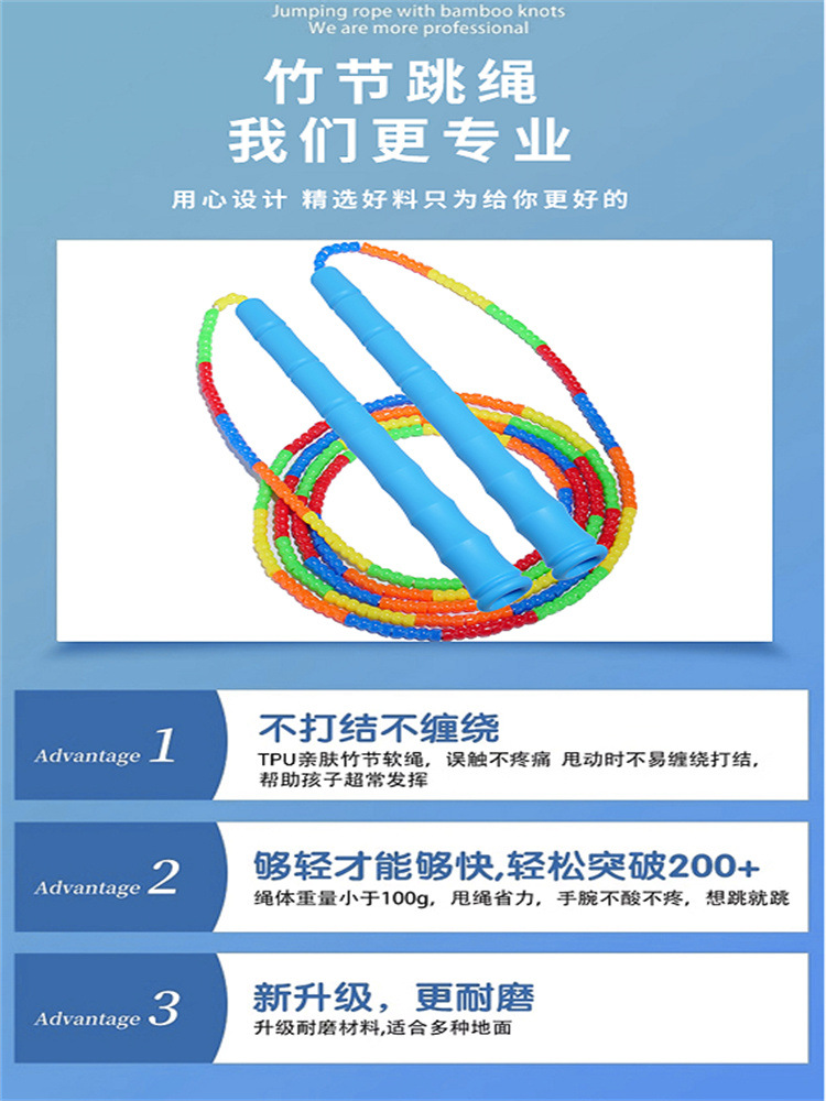試合貝のカモシカの柔らかい玉の縄跳びの玉の節の竹節の縄の幼児の小学生の7色の竹の節の縄跳びの訓練の試合のフィットネス
