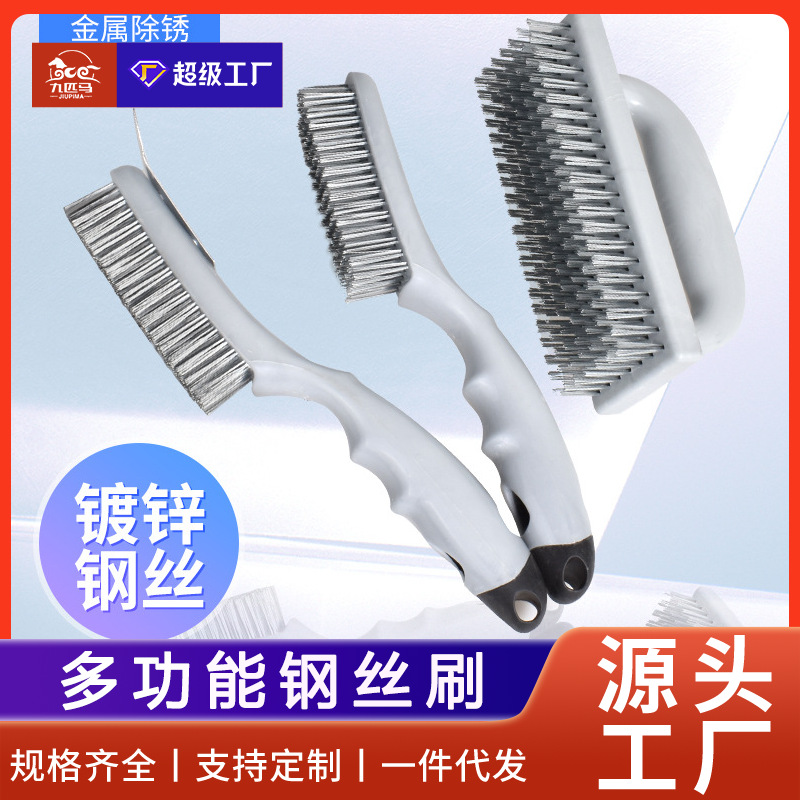 卸売りワイヤーブラシ亜鉛メッキ銀糸プラスチック柄4列5列7列ワイヤーブラシ洗浄除錆研磨工業ブラシ