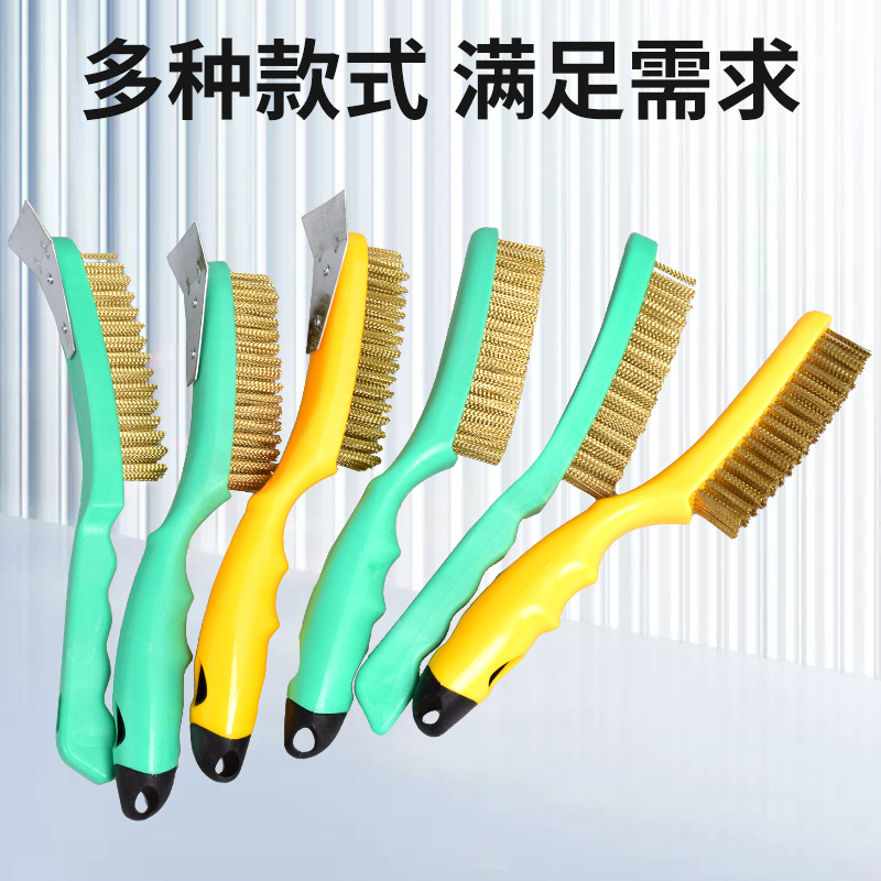 九頭馬鋼線ブラシ銅メッキ鋼線ナイフ型ブラシプラスチック柄清潔工業銅線除錆バーベキューネット鋼線ブラシ
