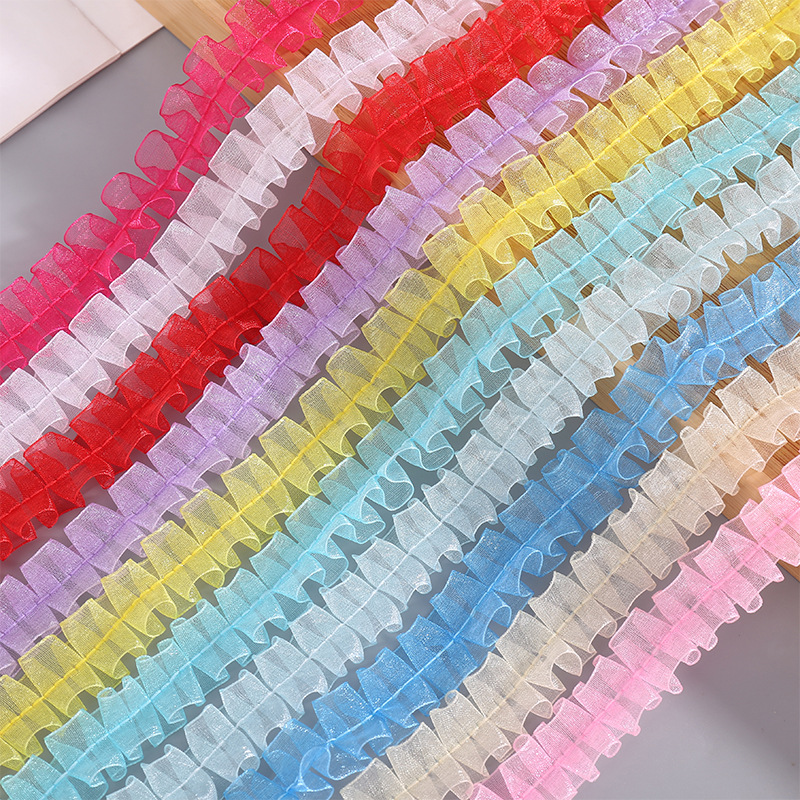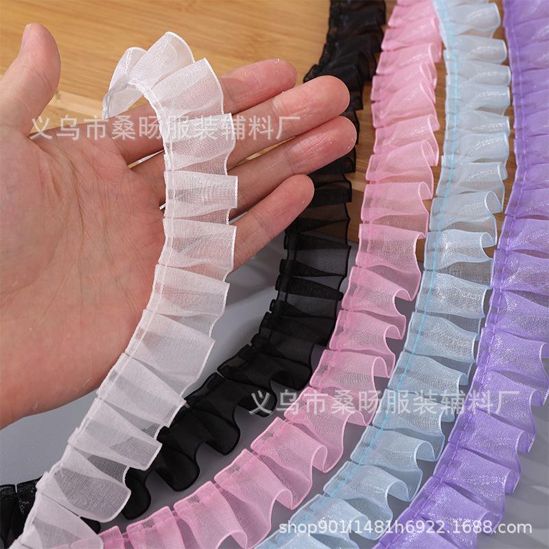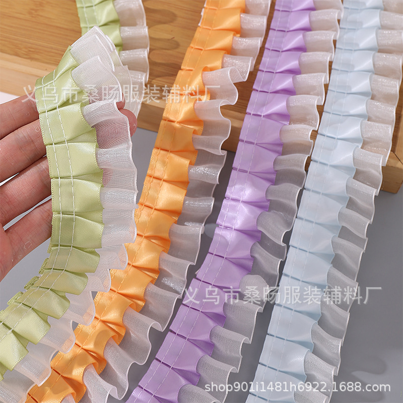 カラー二重しわレース雪糸レース帯服装補助材料手作りdiyカーテンスカート縁帯卸売り