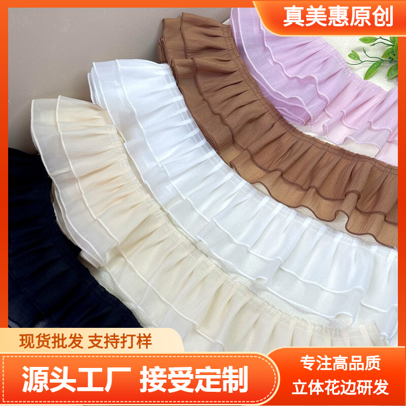 5cm 2層シフォンしわレース補助材料手作りdiy家庭ソフト飾り割引ハスの葉の縁帯卸売り