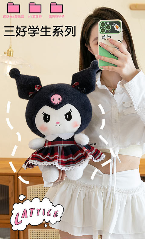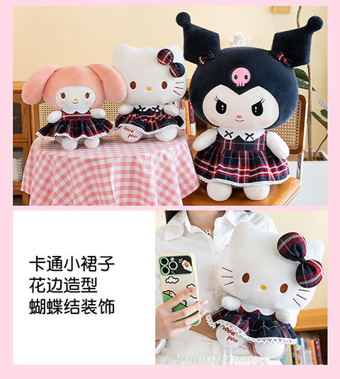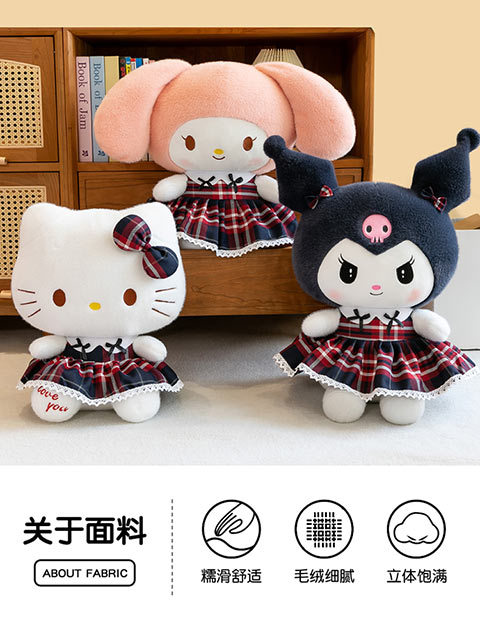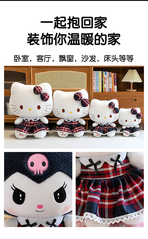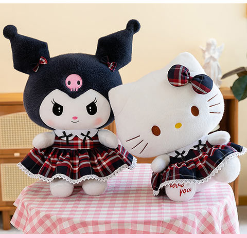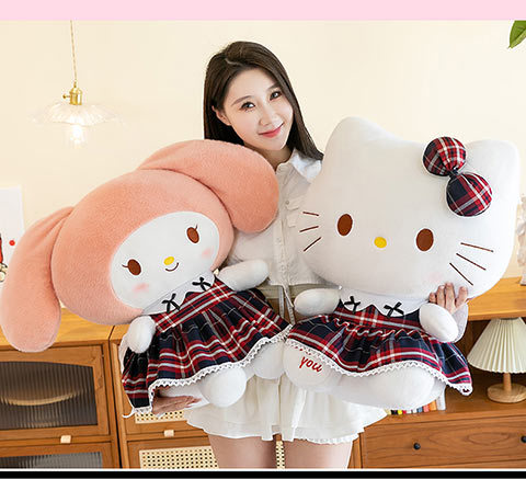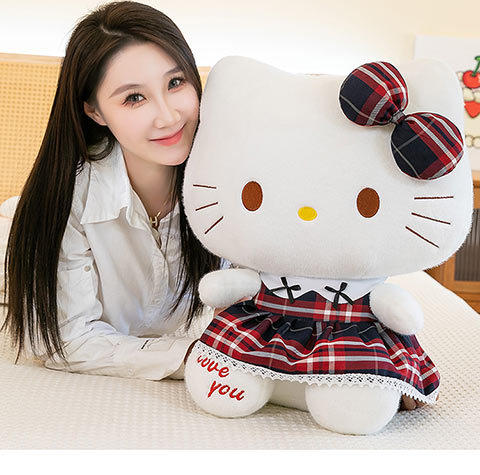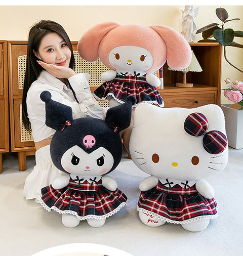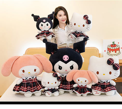 三好学生の猫のぬいぐるみの格子縞のスカートの倉庫の女の子の誕生日プレゼントの美楽は枕の家庭の装飾品を抱いています。