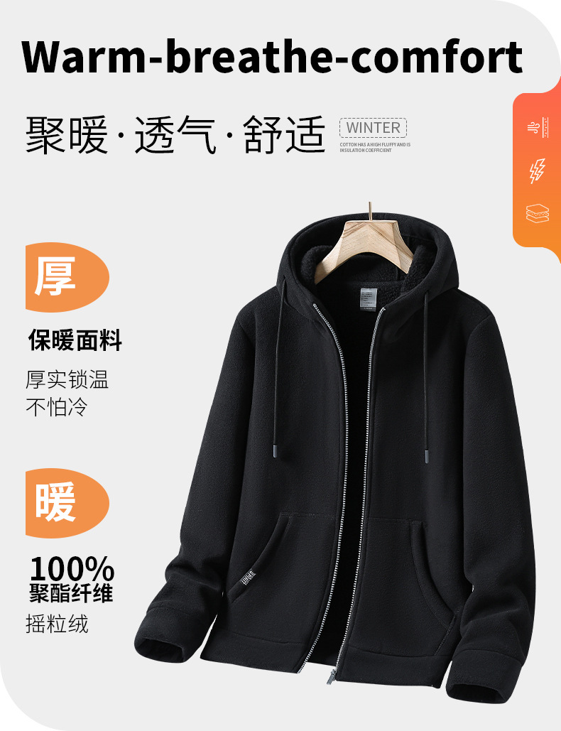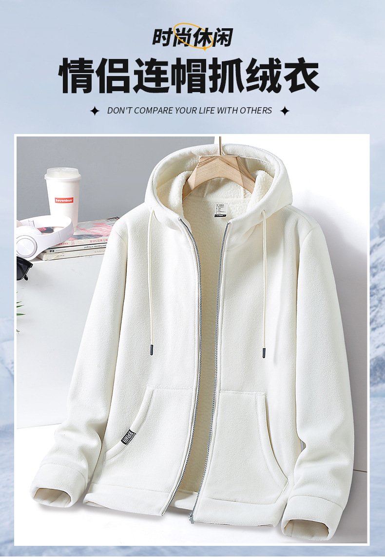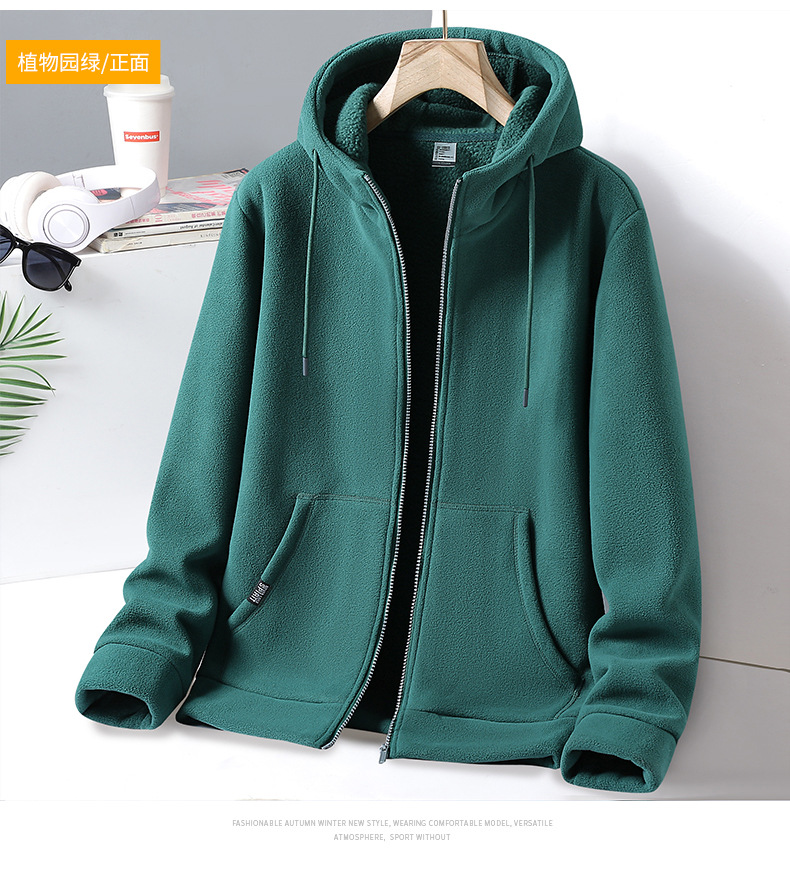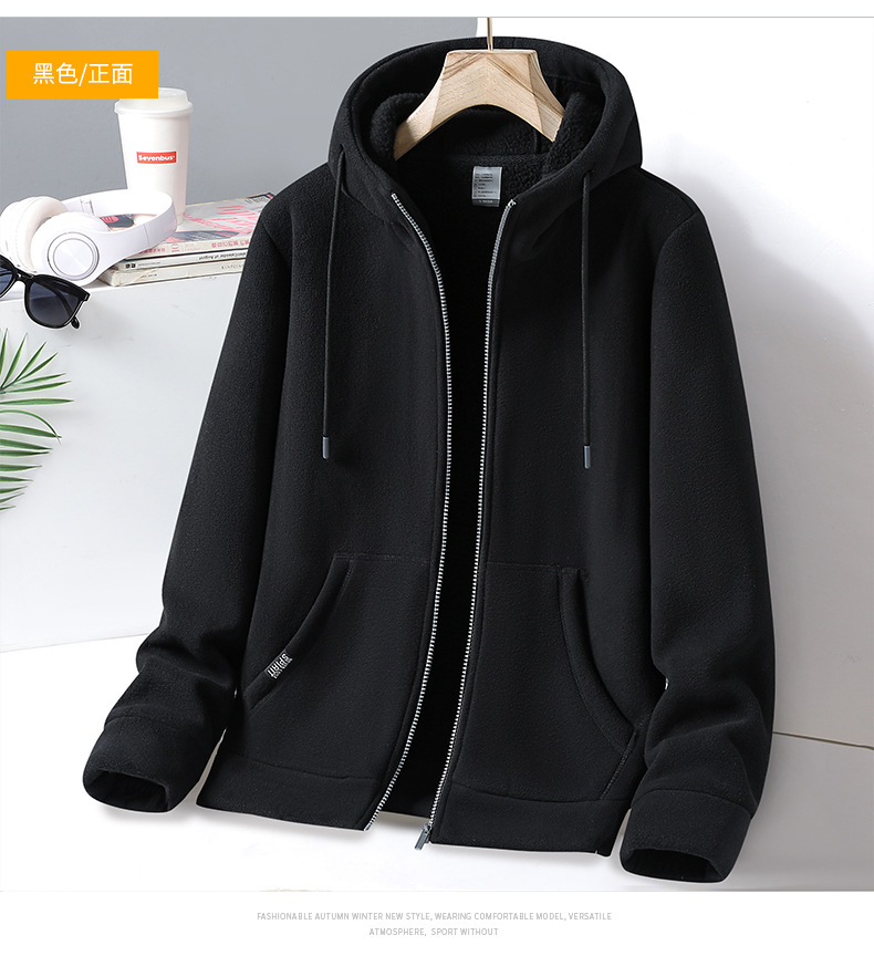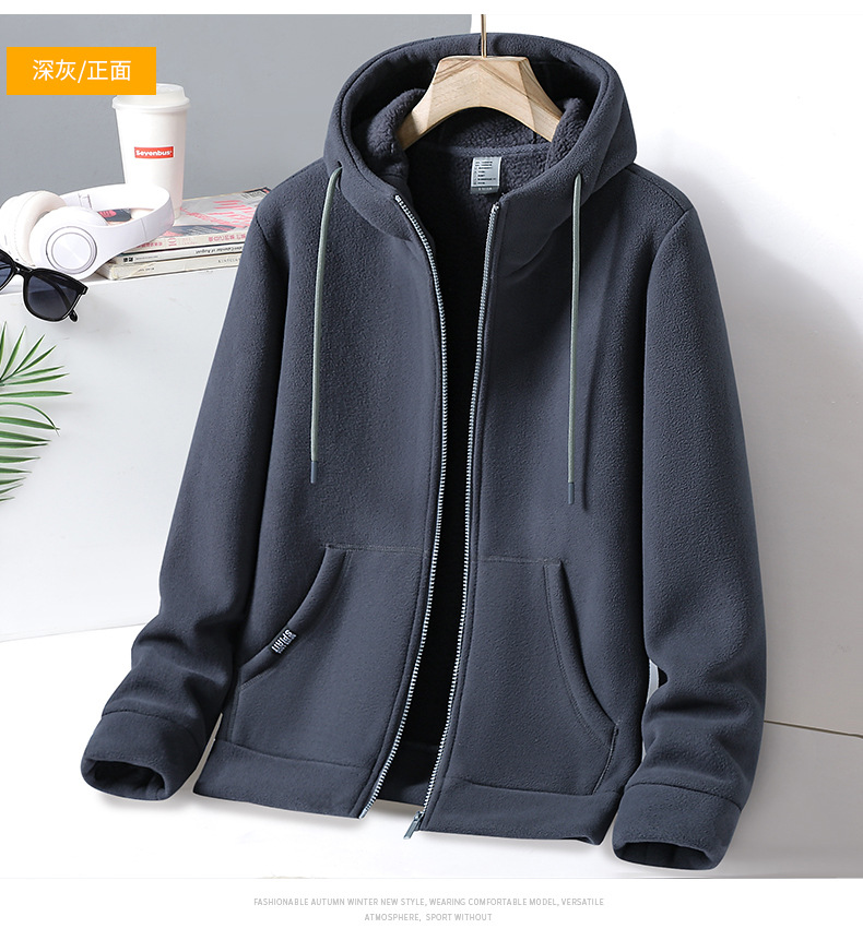 23-5男女カップルの帽子付き純色秋冬カーディガン