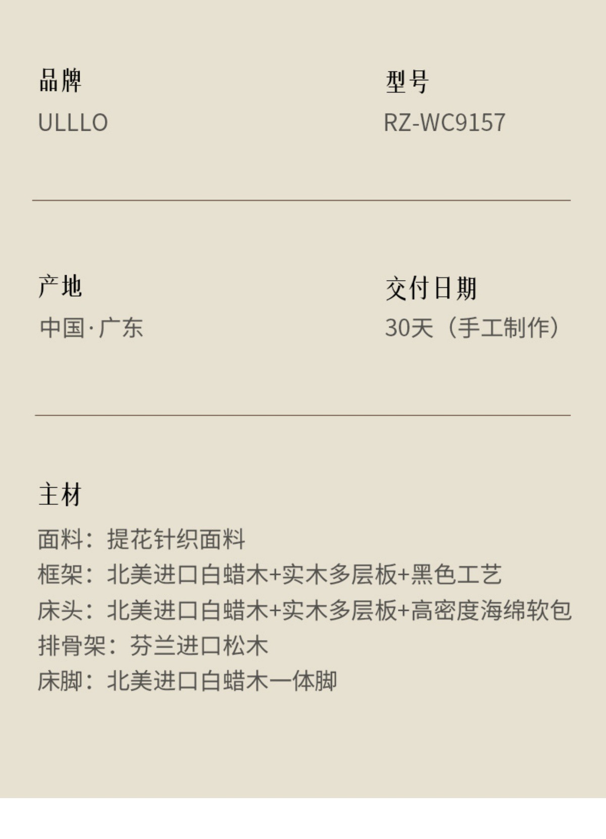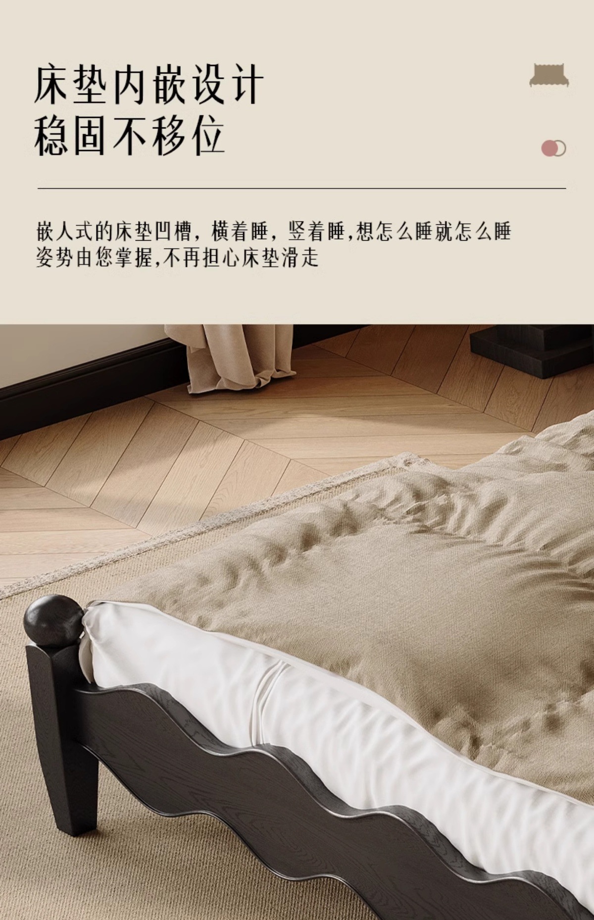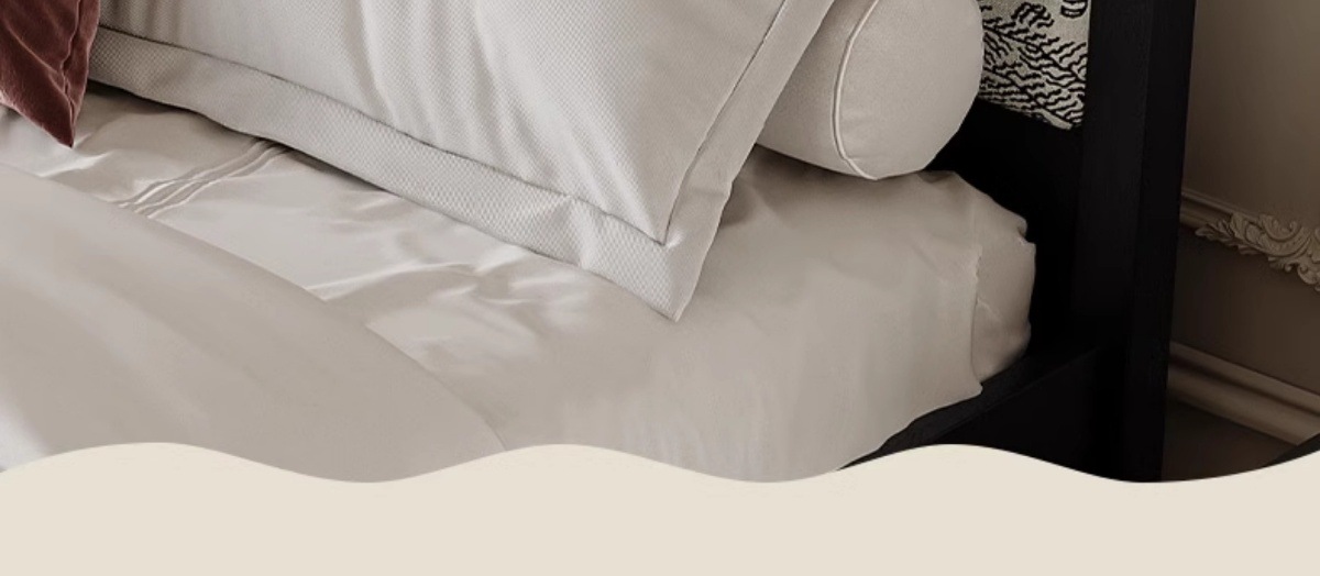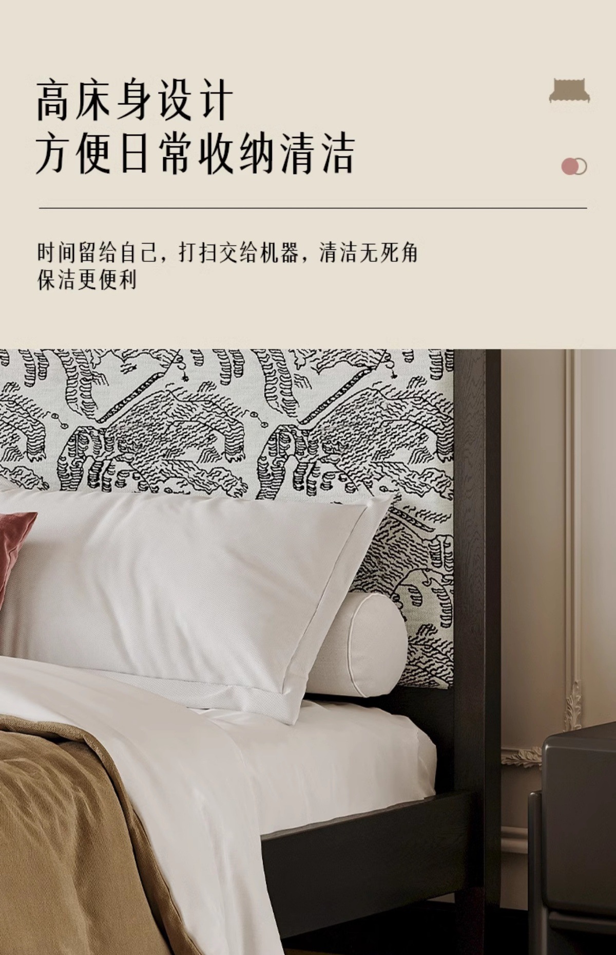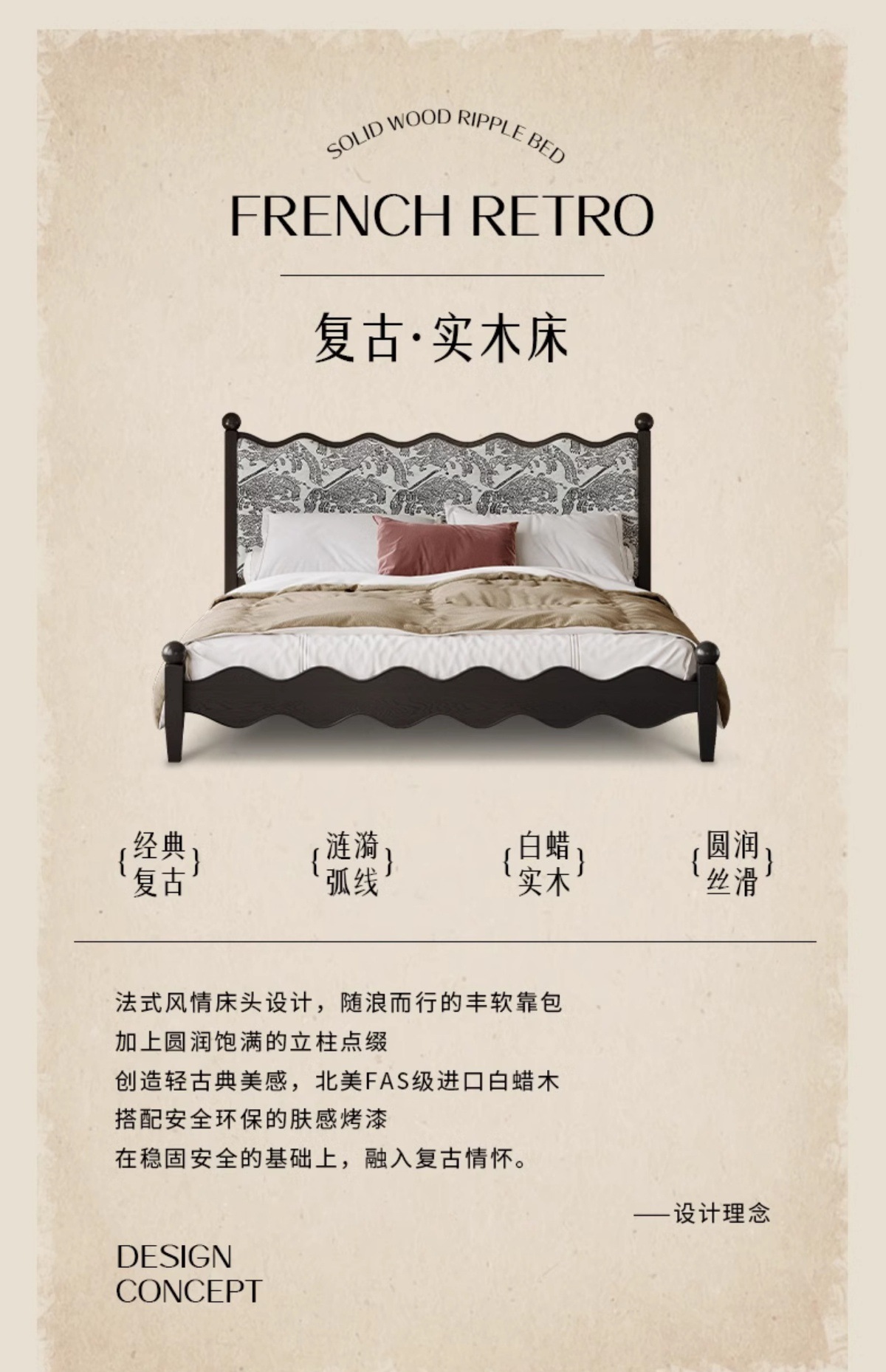 ULLLOフランス復古ベッド実木ツインベッド1.8メートル主臥ジャカード布芸黒波白蝋木ベッド