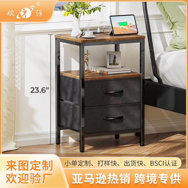 クロスボーダーシンプル寝室置物充電コンセントベッドサイドテーブルリビングソファモバイル電源不織布収納サイドテーブル