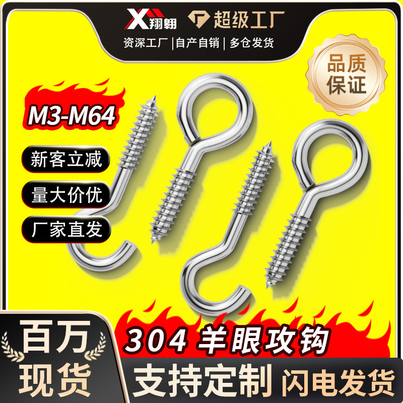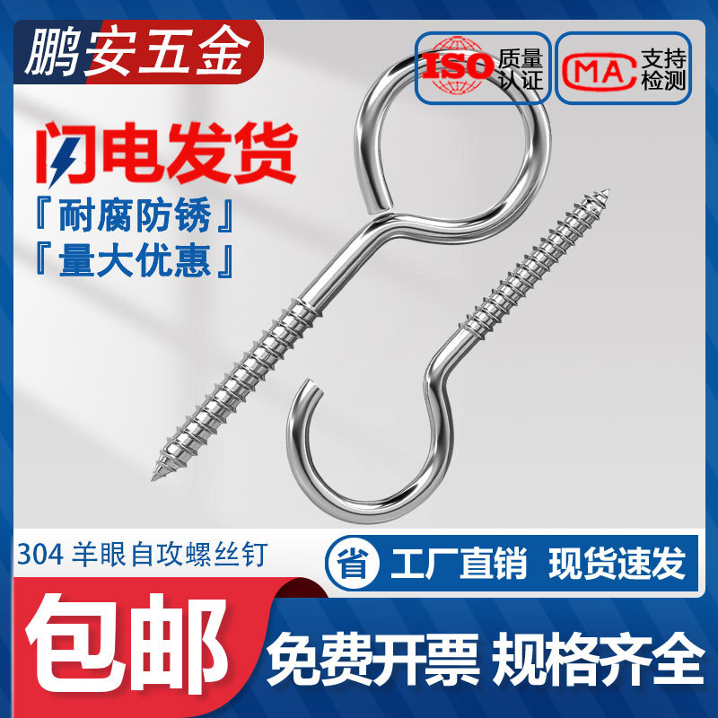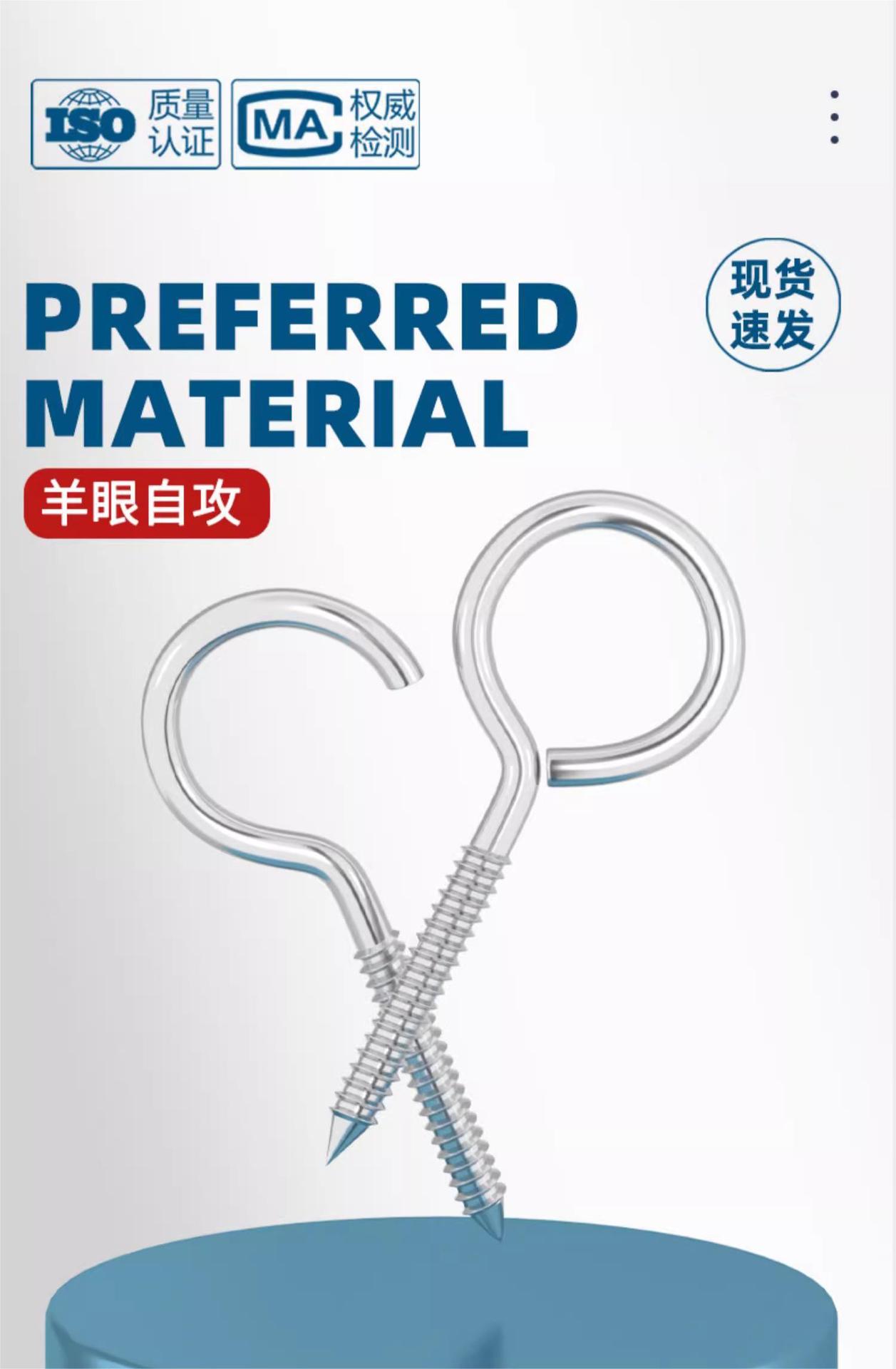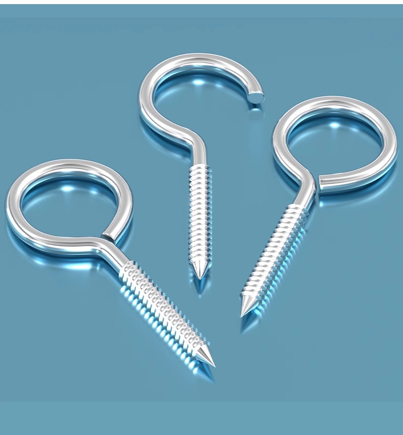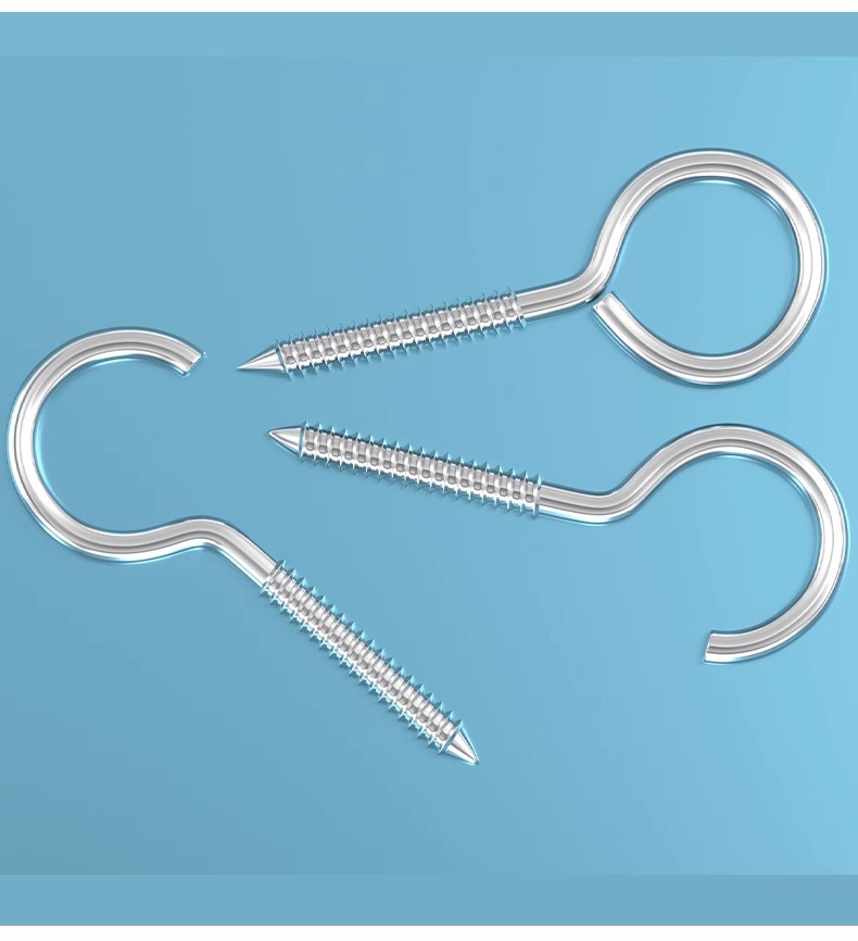 ネジ リング付きハンドツイスト M3M4M5mm ライトフック ハードウェアフック リング付き 亜鉛メッキ拡張ボルト No.6/8/10 メッキ
