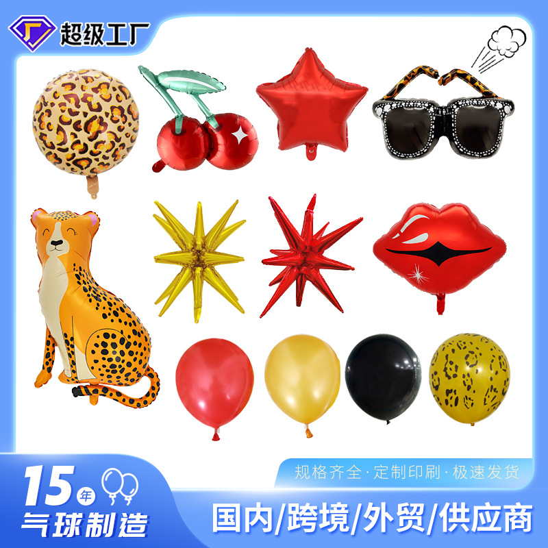 [恒越]跨境豹纹樱桃气球套装单身女郎生日派对大红唇情人节气球
