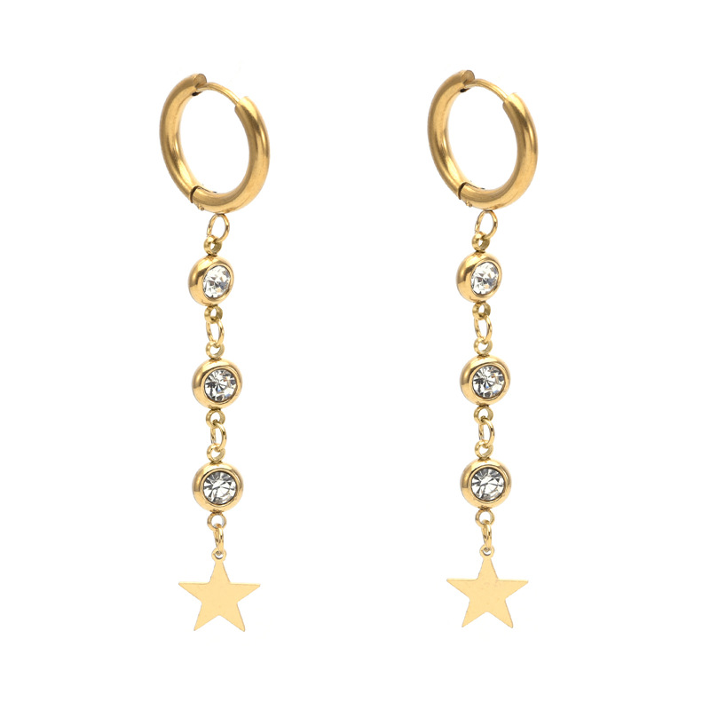 欧米のクロスボーダーのファッションの星のダイヤモンドの長いタイプのフリンジイヤリングの大衆の設計の個性のステンレスの耳のボタンのイヤリング