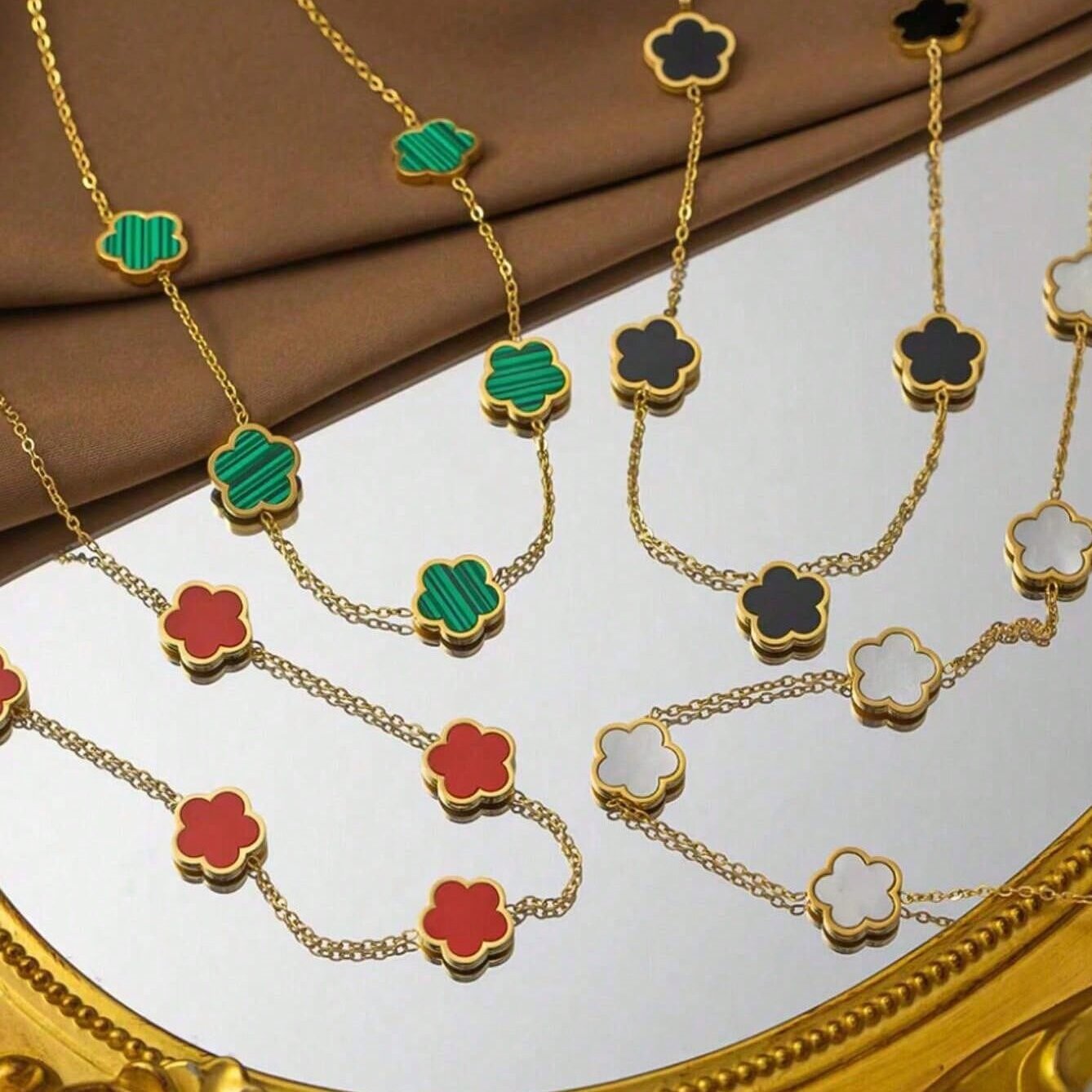 欧米のクロスボーダーの新型ステンレスの幸運な五葉の花のネックレスの小さい大衆の気質は簡単に梅の花の鎖の女性に似合います。