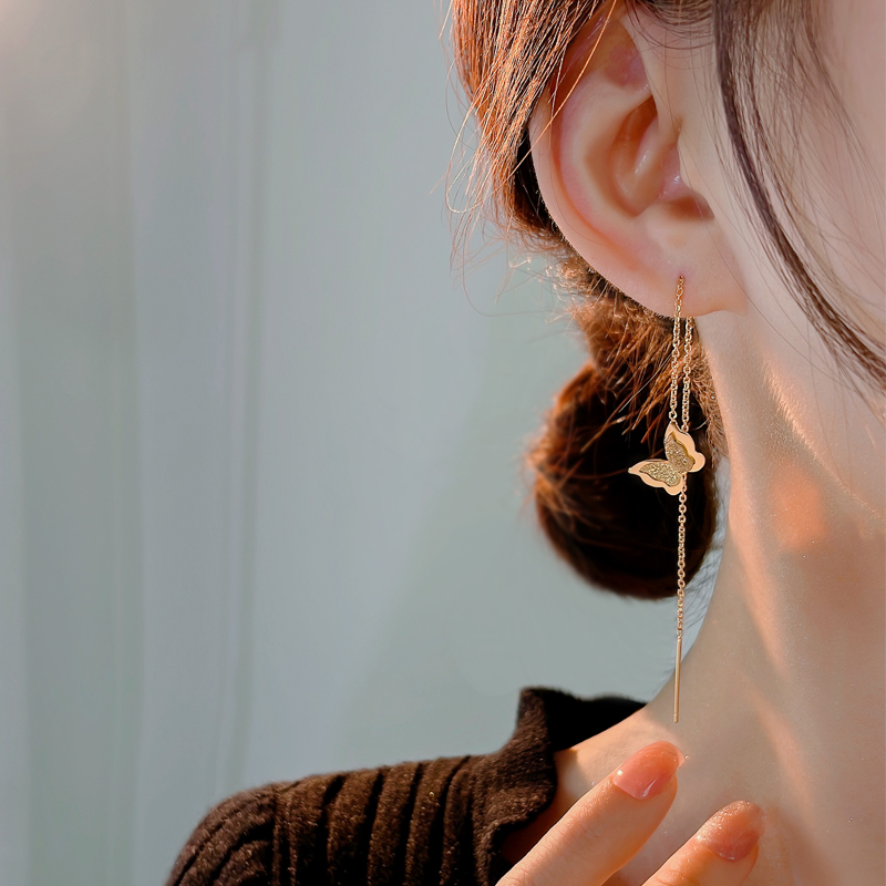 蝶流蘇耳線2023年新型潮18k金耳飾り女性小型ファッション彩金イヤリング森系イヤリング