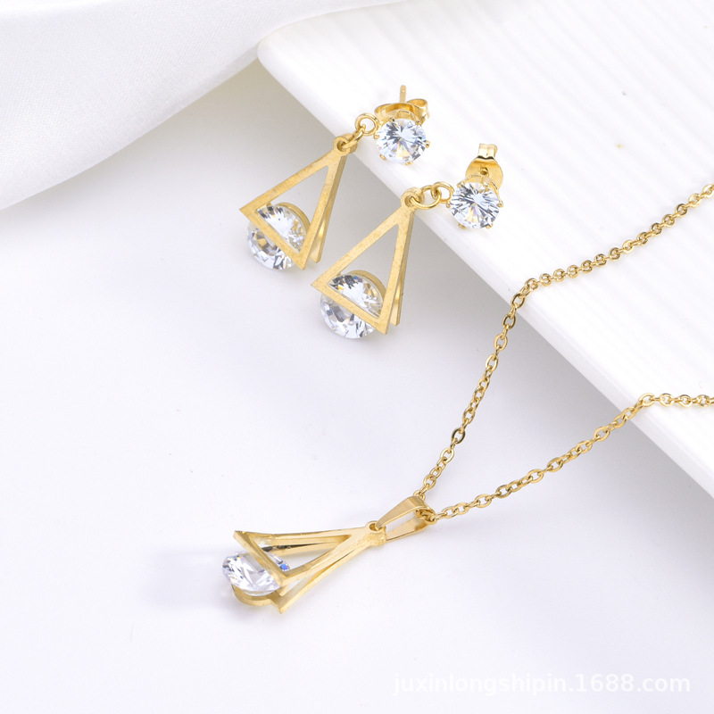 欧米のファッション的なピアスのネックレスのジルコンのチェーンの気質の三角の水滴の形の2つのセットの個性のアクセサリのスーツの卸売り