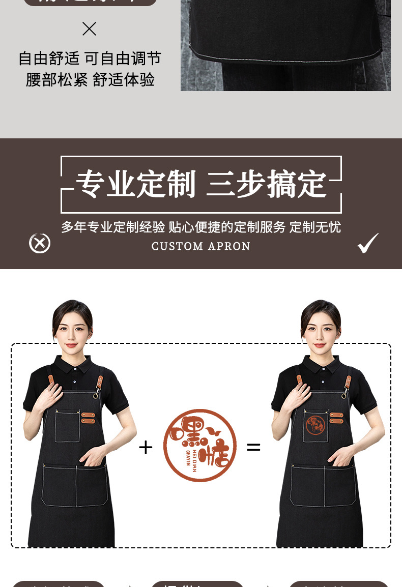 メーカー卸売りエプロンカスタムロゴ印字防水防油広告エプロンスーパーネイルコーヒーギフト注文