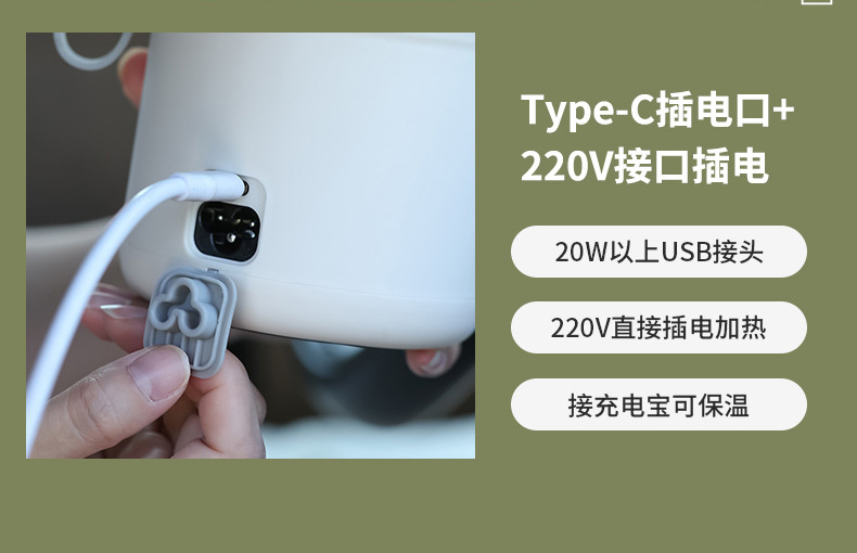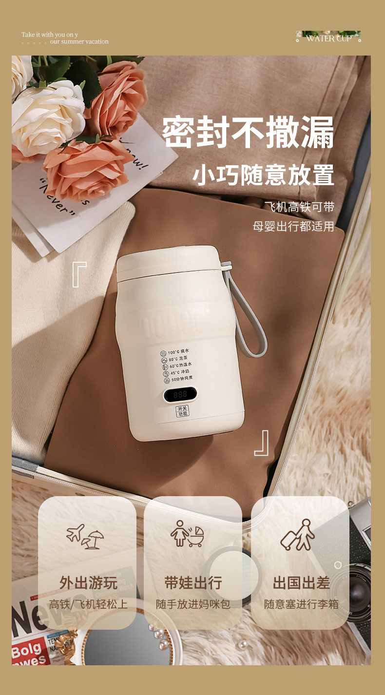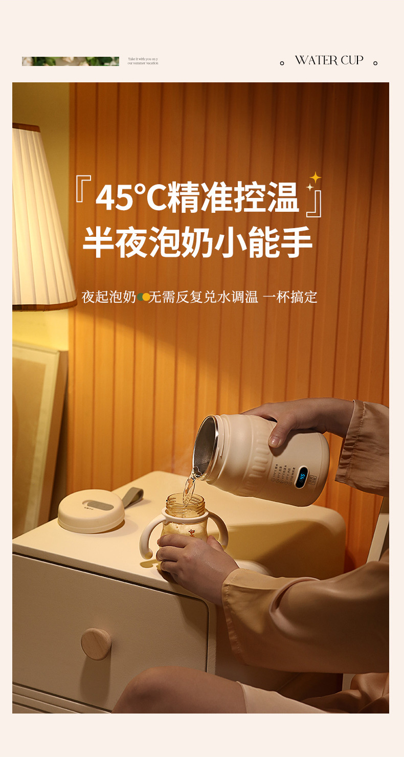 恒温ミルク調乳用ポータブル電気カップ 小型保温カップ 旅行用一体型全自動type-c湯沸かしカップ