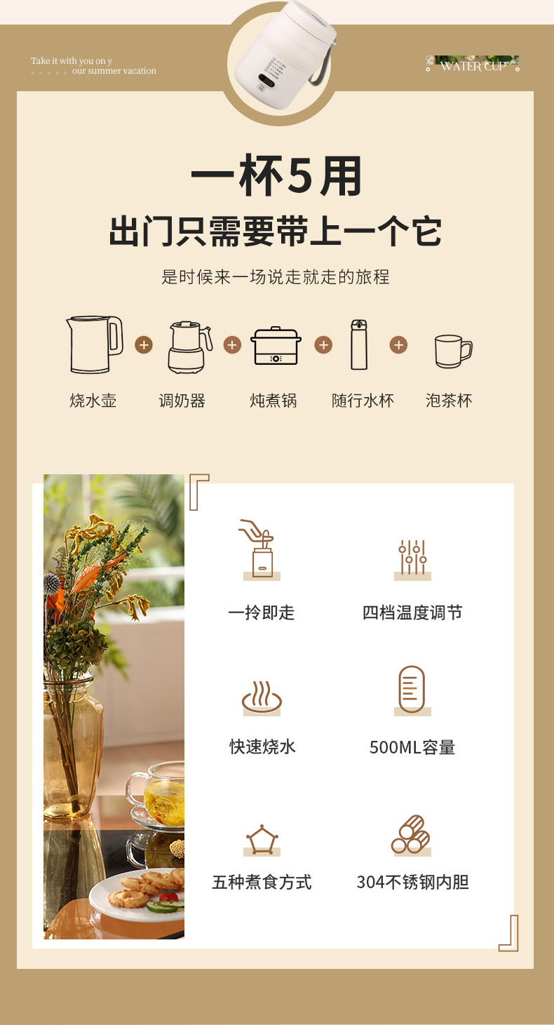 携帯型電熱コップ多機能暖乳器旅行水筒家庭用保温湯沸かし器オフィス電熱コップ
