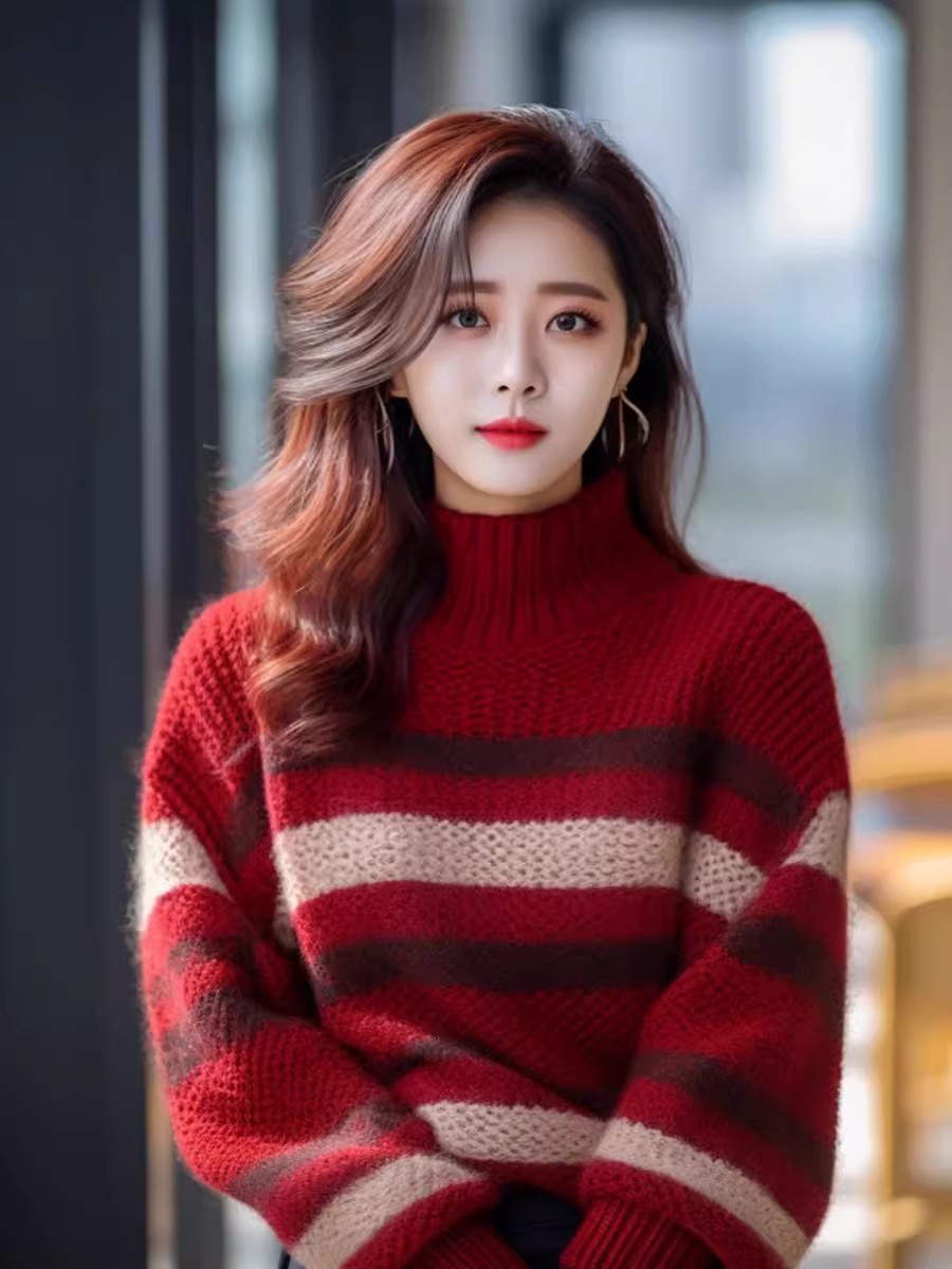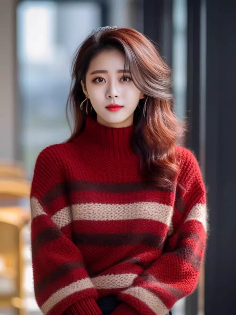アンコラの赤いストライプの高襟のセーターの女性の2024の新型の早秋の小さい背は初秋の韓系の雰囲気感に乗ります。