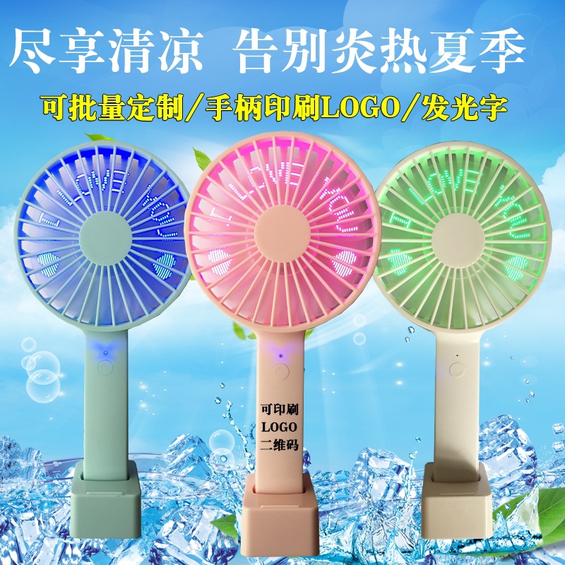 工場卸売りdiyオーダーメイドハンディ書き込みledコンピュータプログラミングフラッシュ文字付き発光扇風機