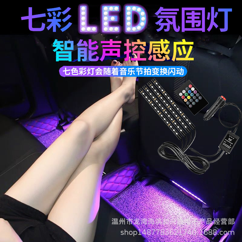 車の雰囲気灯車内感応led七色音楽音控リズムusb足底灯改造無配線自動車装飾
