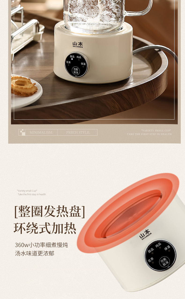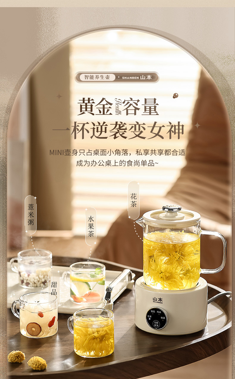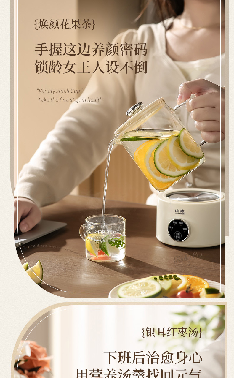 山本养生壶家用多功能保温煮茶器小型电热煮茶壶玻璃办公室烧水壶