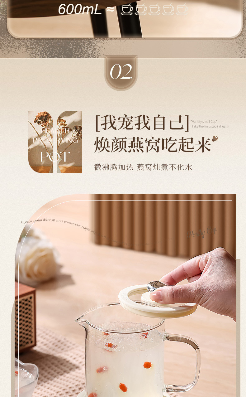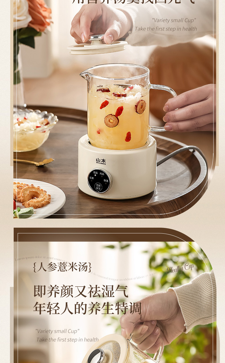 養生ポットガラスポット多機能家庭用小型オフィス茶器湯たんぽ花ティーポットミニ電気シチューカップ
