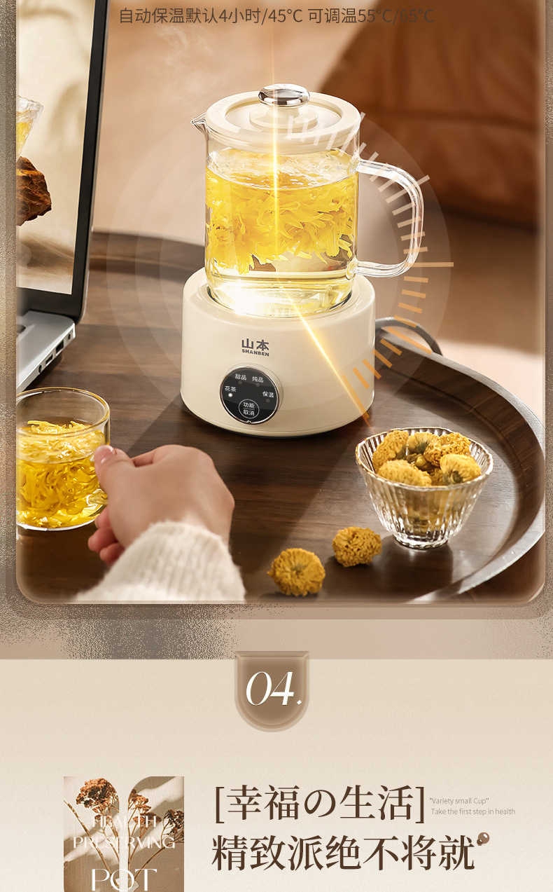 山本養生壺家庭用多機能保温茶器小型電熱煮急須ガラスオフィス湯たんぽ