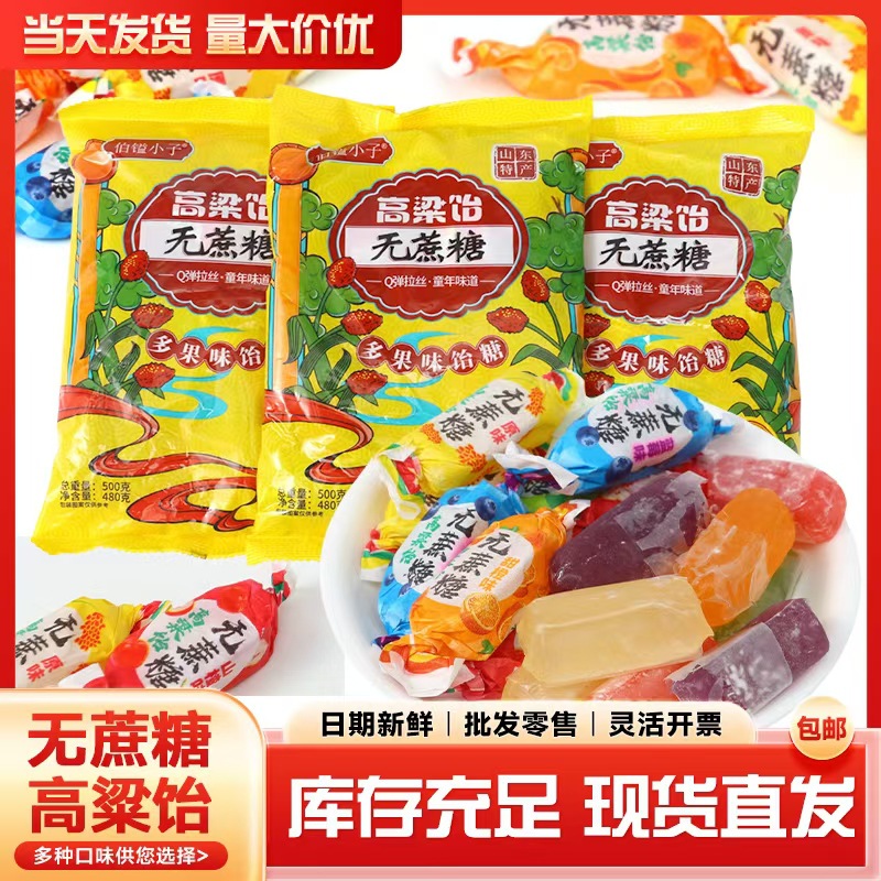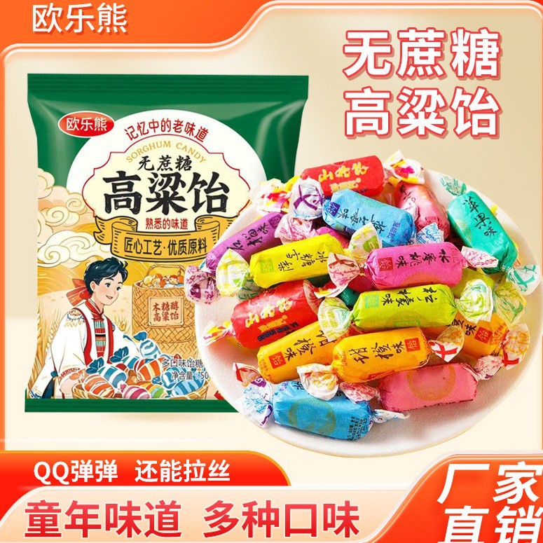 ()欧乐熊木糖醇高粱饴无蔗糖高粱拉丝软糖山东特产500g/袋软糯