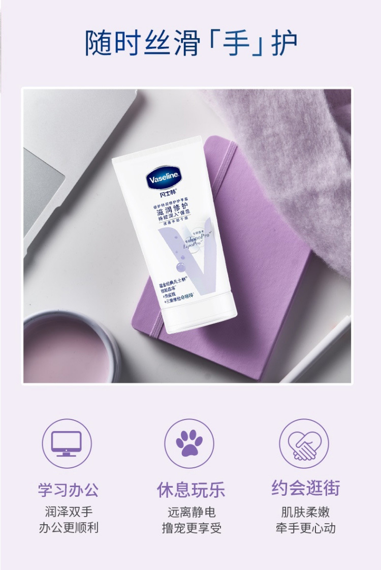 凡士林护手霜水保湿滋润修复烟酰胺提亮防干裂香型润手霜便携