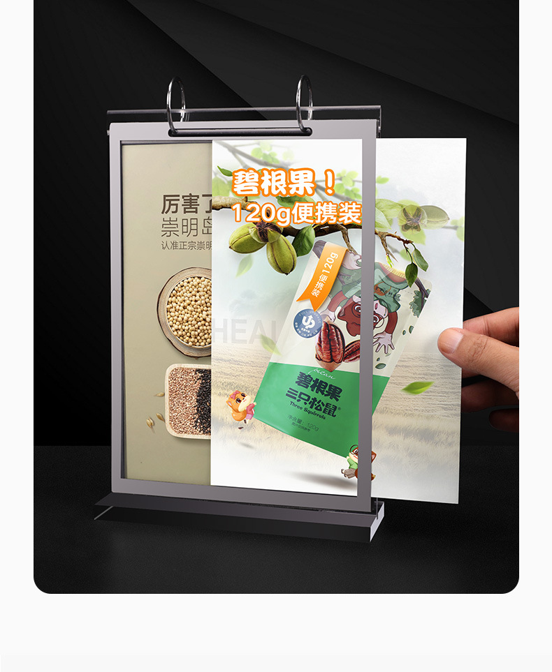 A 4台はアクリル台カードのページをめくって、テーブルカードの目視棚のルーズリーフのメニューを挟んでPVC展示ブランドのレストランの酒のブランドを挟みます。