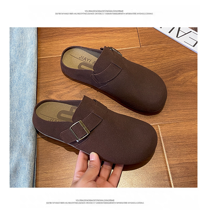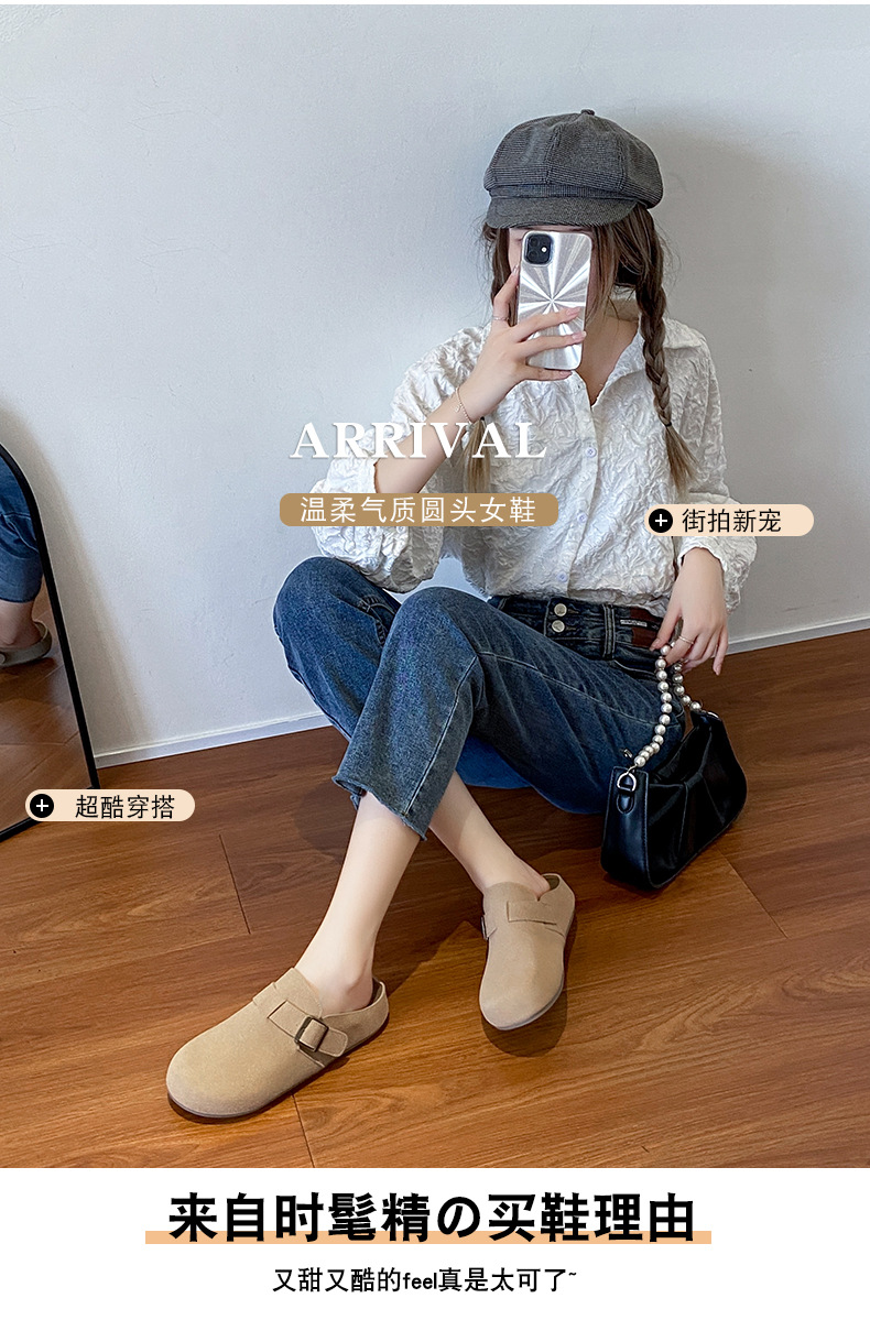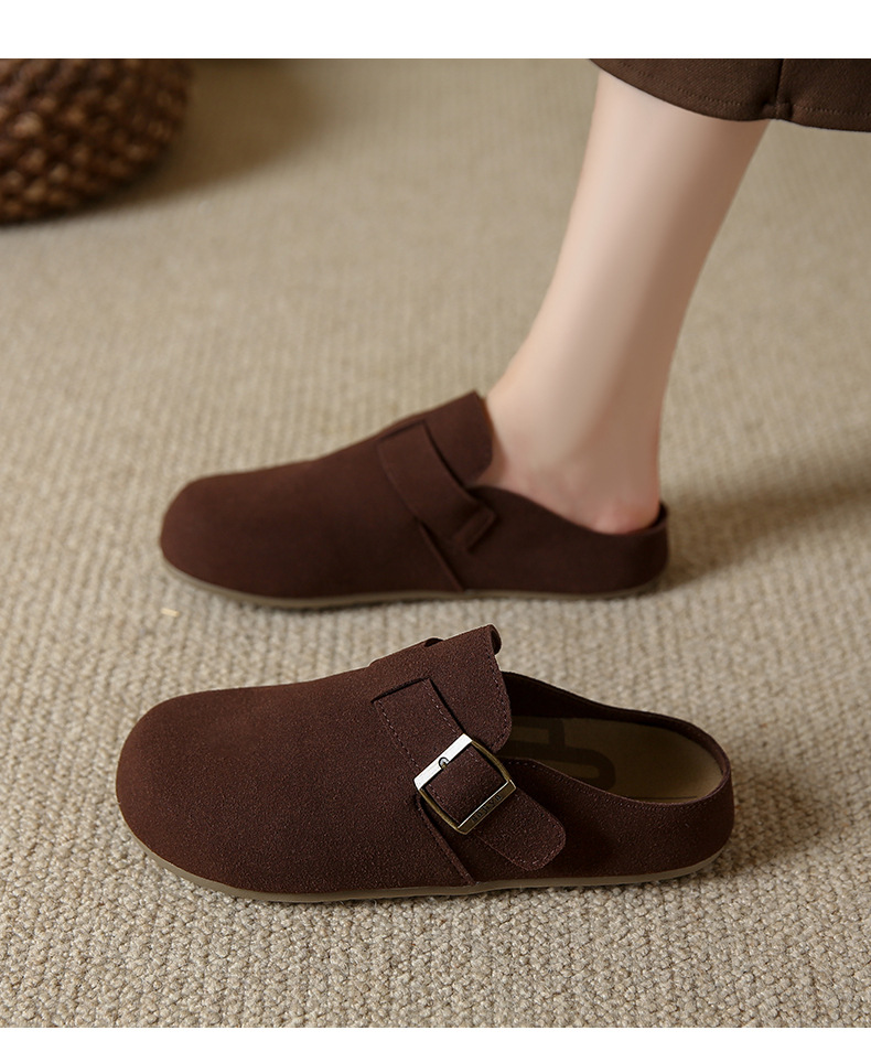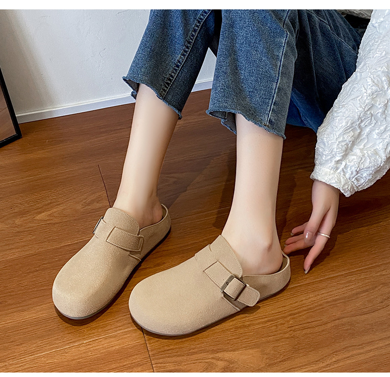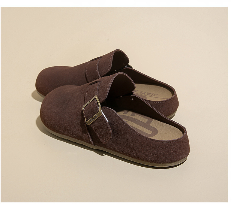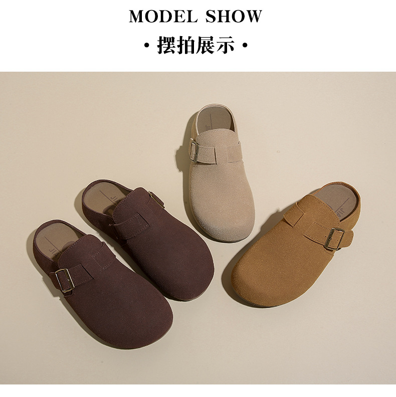 メーカー直販大サイズ35-44毛スリッパ女性2021新冬英倫風包頭半引き