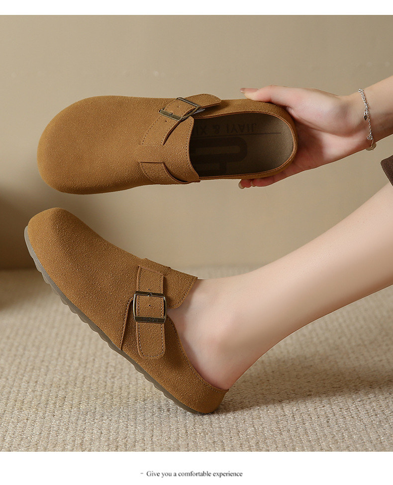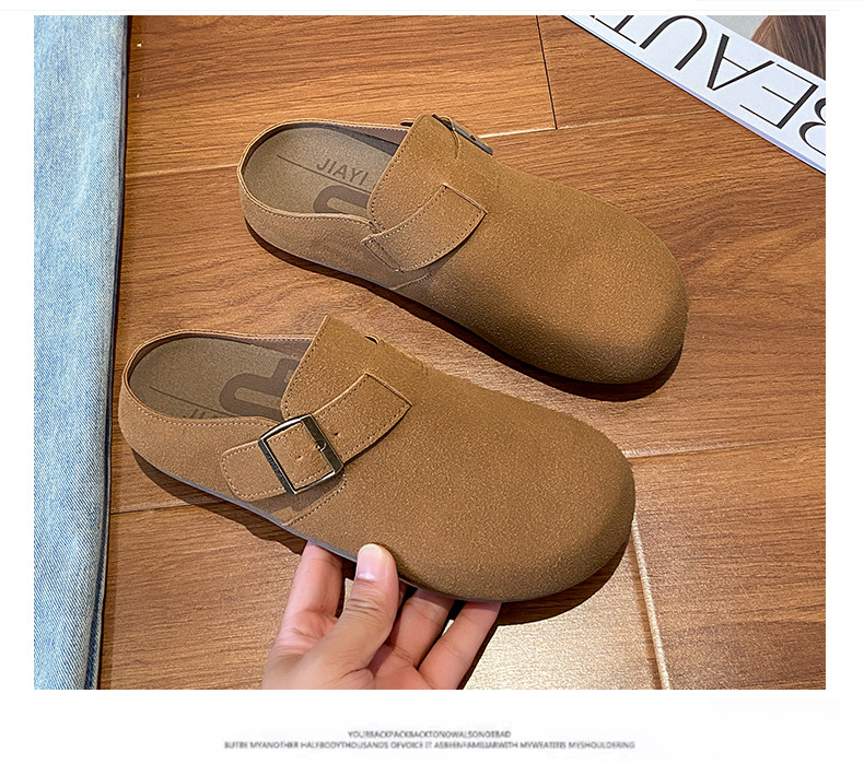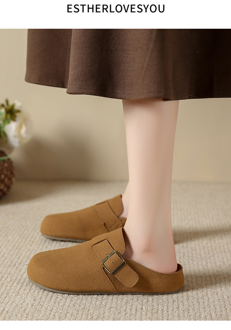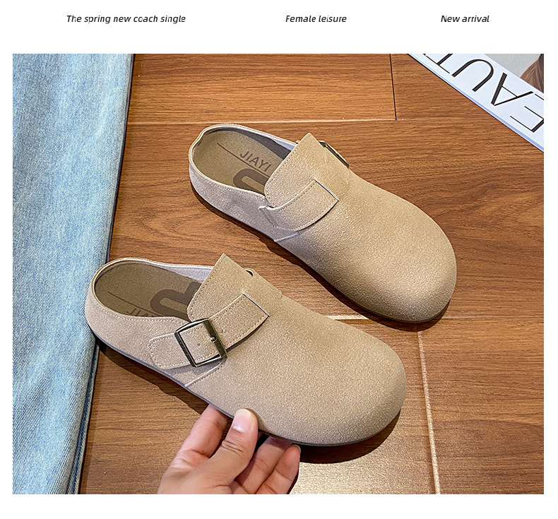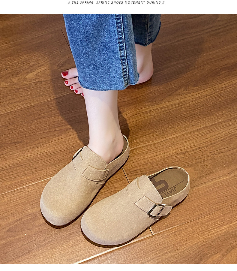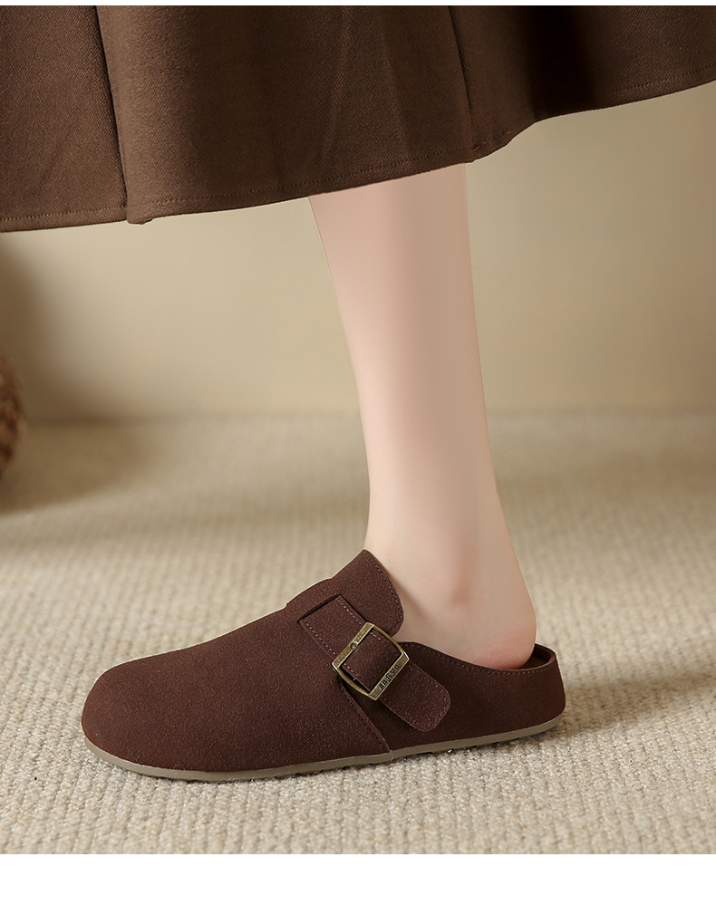 メーカー直販大サイズ35-44毛スリッパ女性2021新冬英倫風包頭半引き