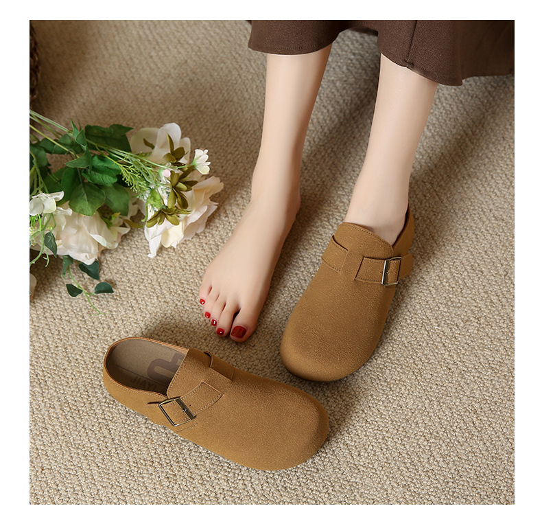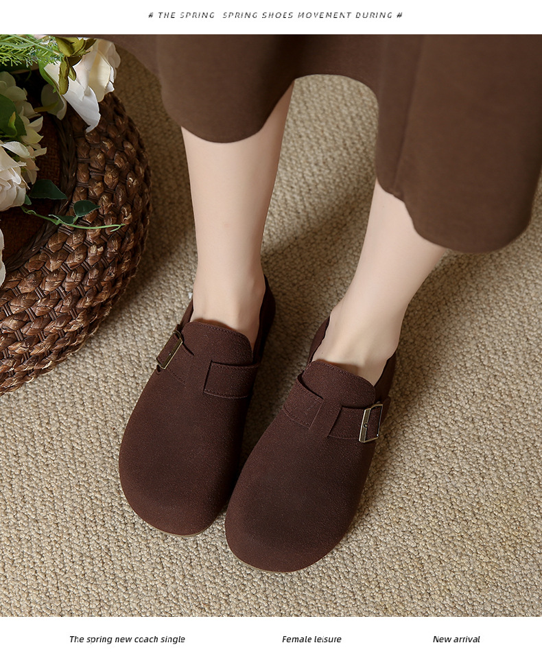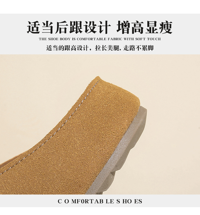 2024年秋冬スエードファッションブラウンレトロローカット人工毛皮デイリーラウンドトゥソリッドカラーコットンシューズ