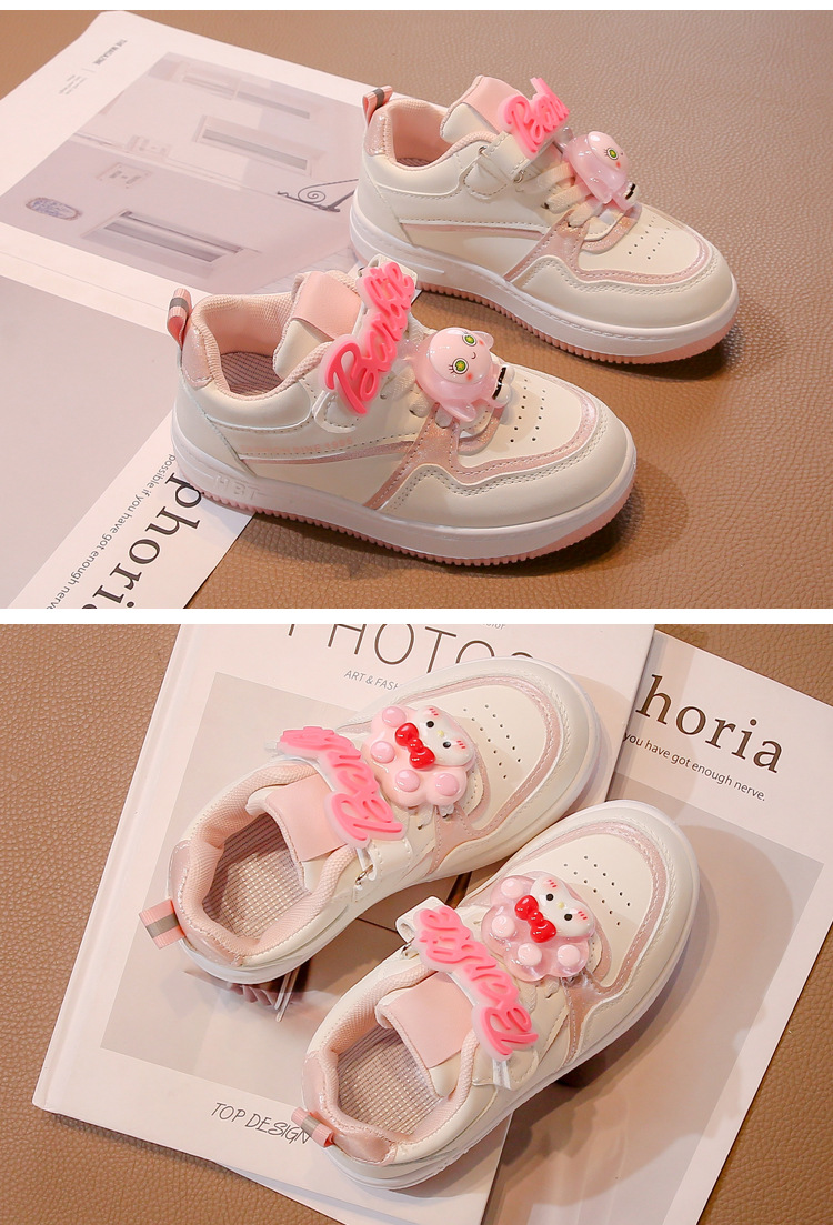 女の子のkt猫の低い靴のひも2025春秋の新型の滑り止めの厚い底の皮の靴の子供の運動靴のファッション