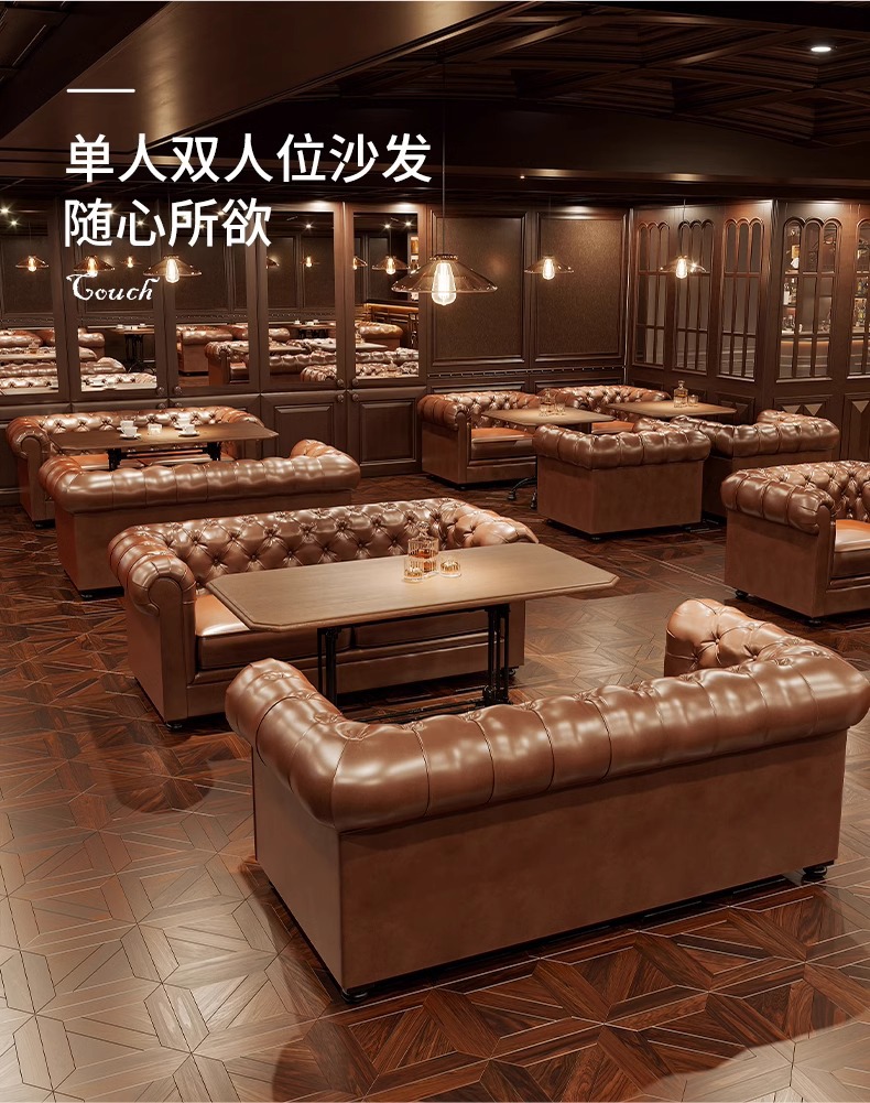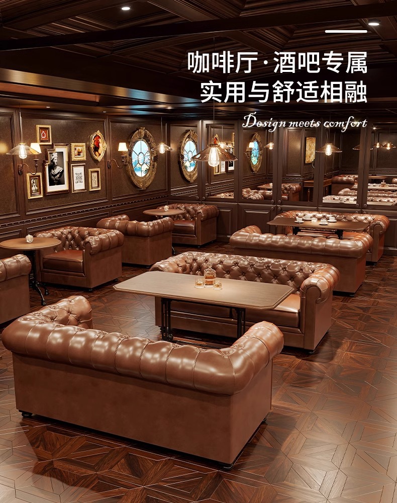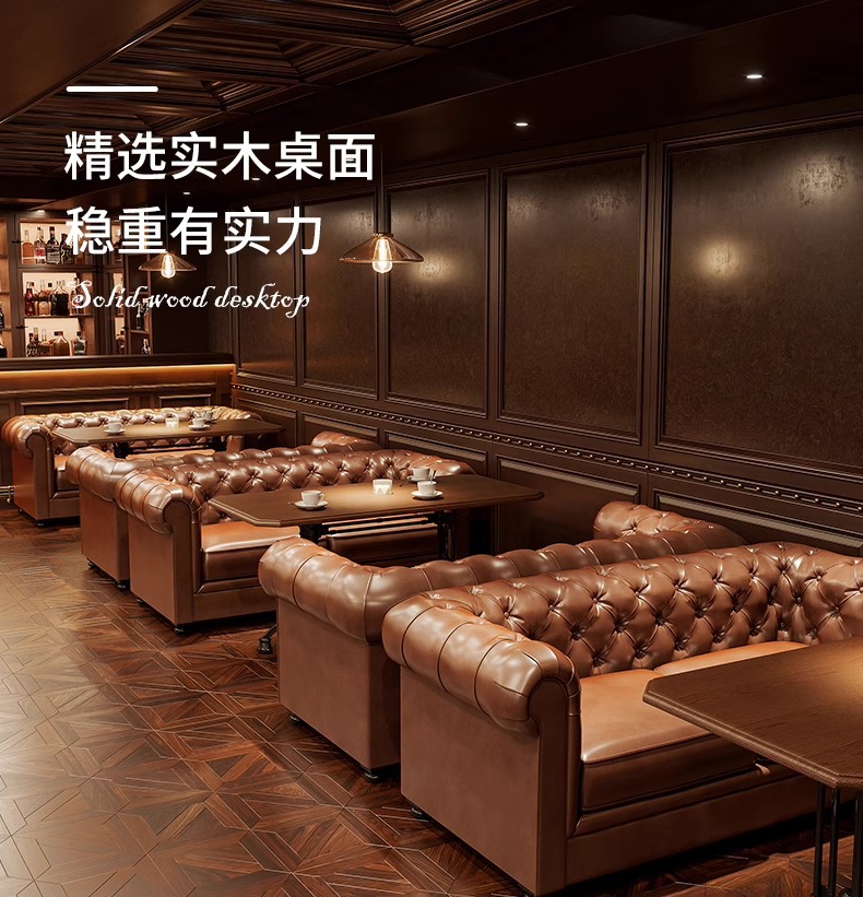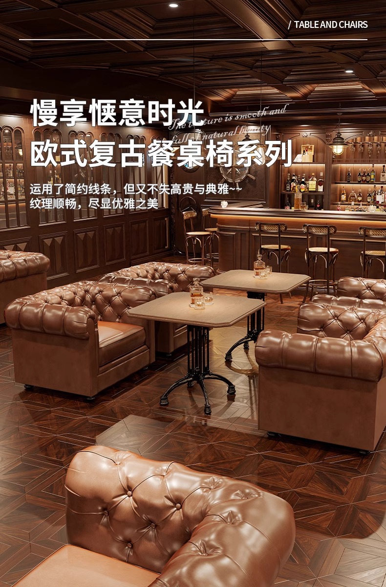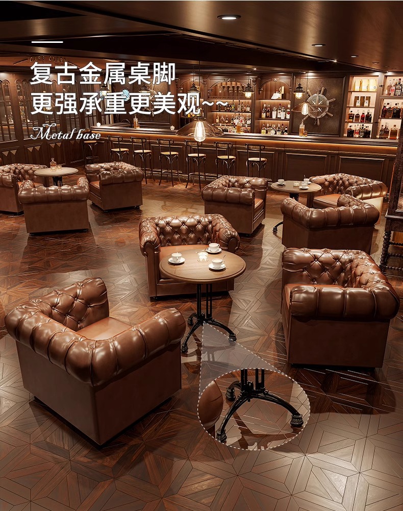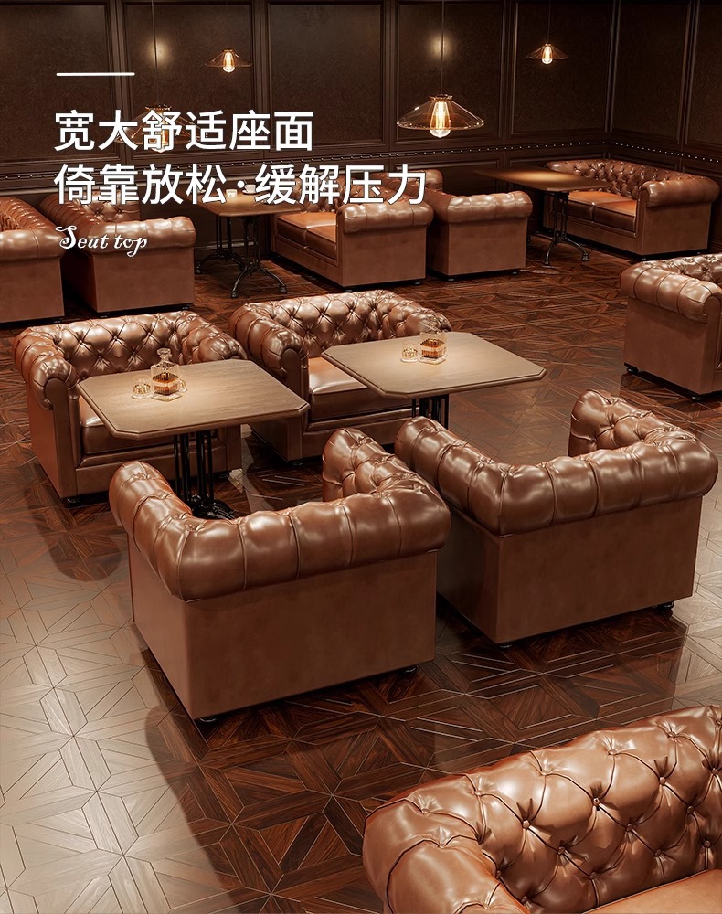 轻奢酒吧沙发美式复古清吧酒馆双人单人沙发西餐厅咖啡厅桌椅组合