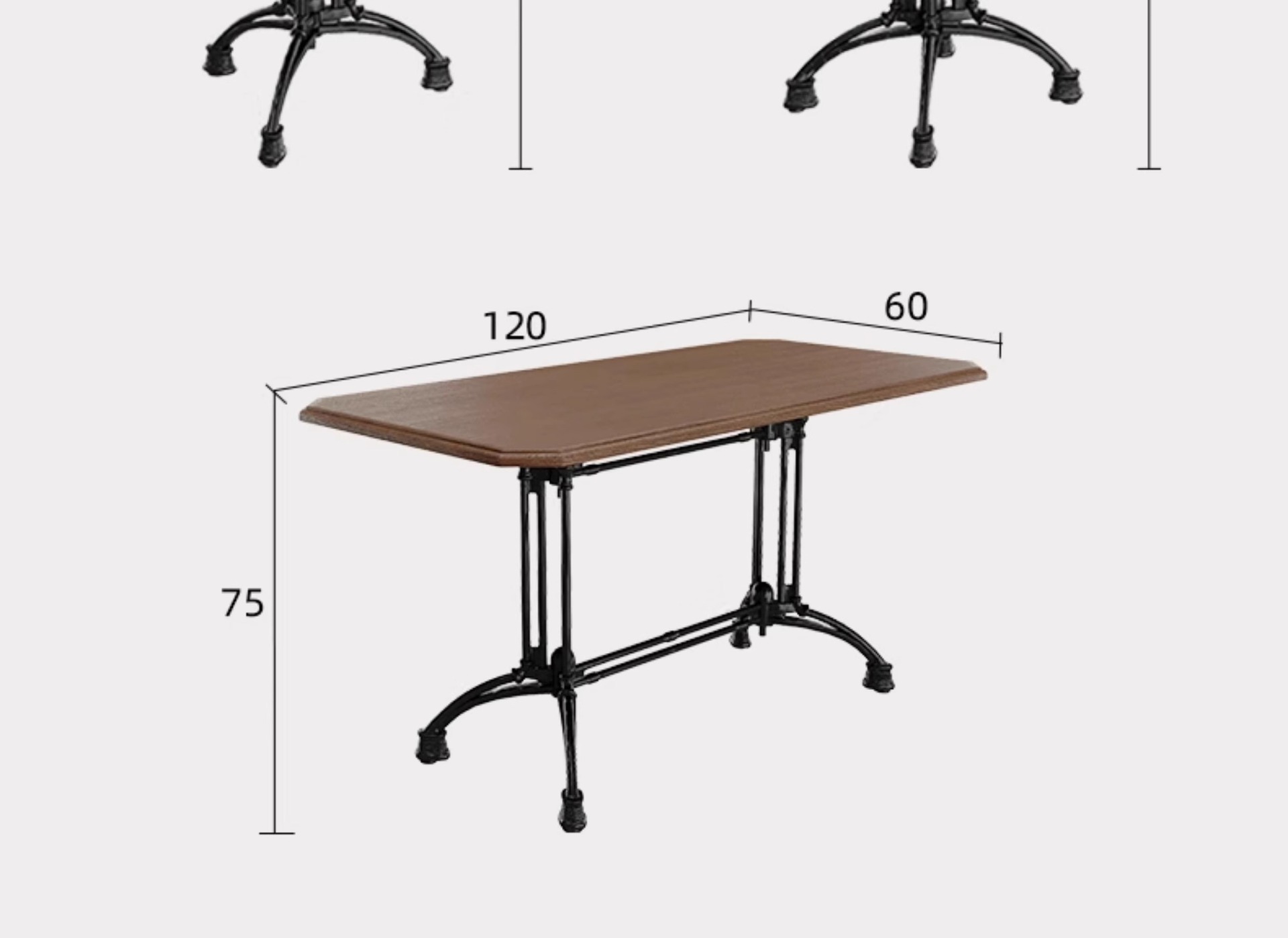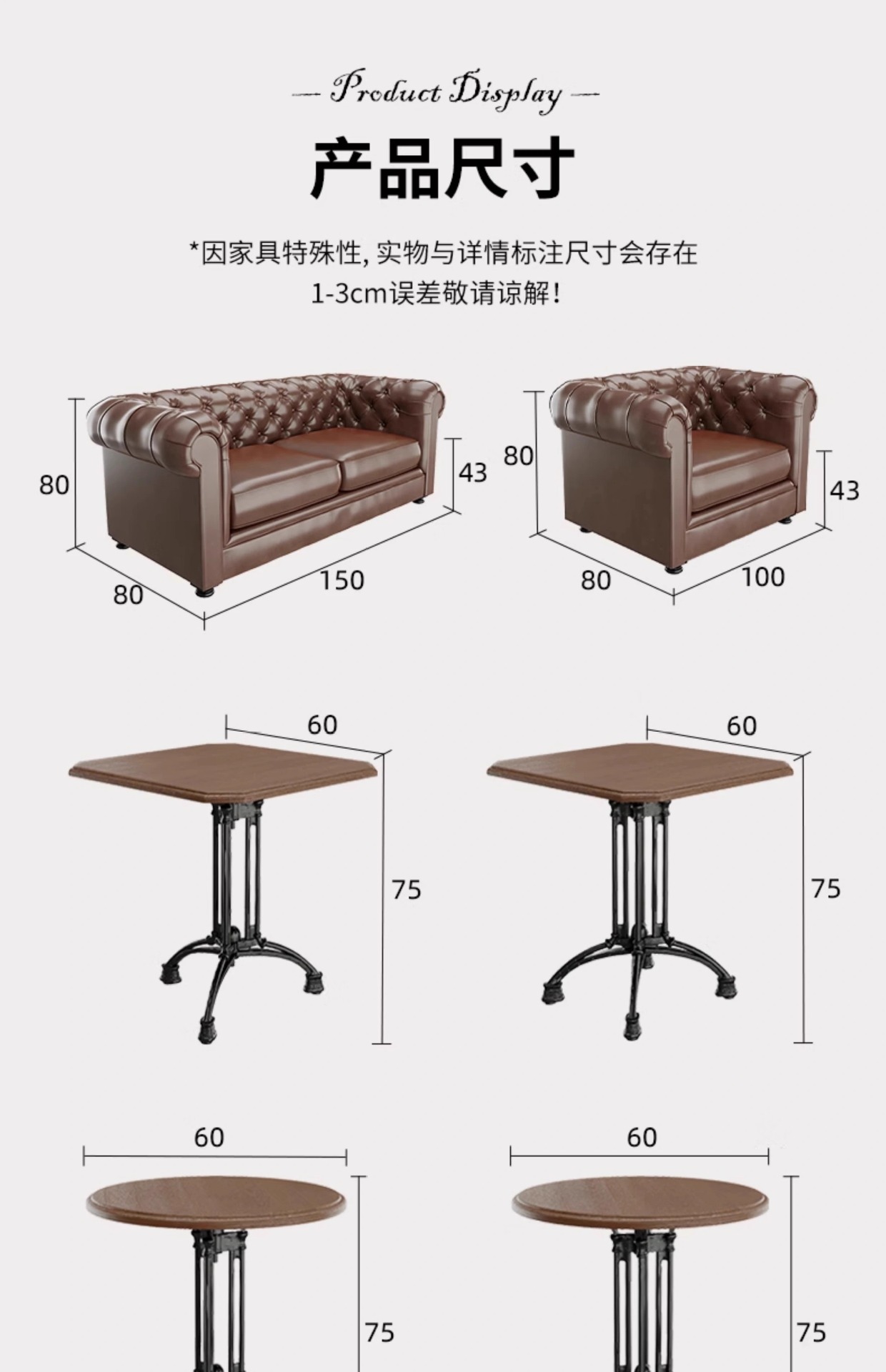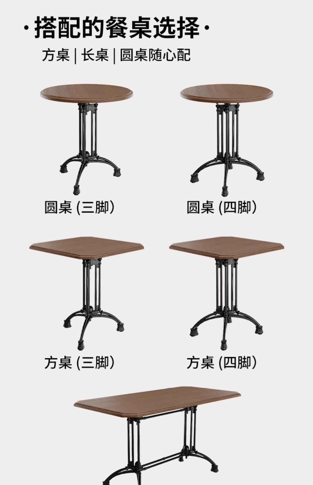 ダークブラウンのラージダブルシート,ダークブラウンのラージシングルシート,ロングテーブル(1.2×0.6),小角テーブル(三脚テーブル0.6×0.6),小型丸テーブル(三本脚テーブル 直径0.6),小角テーブル(4本脚テーブル0.6×0.6),小型丸テーブル(四脚テーブル 直径0.6)